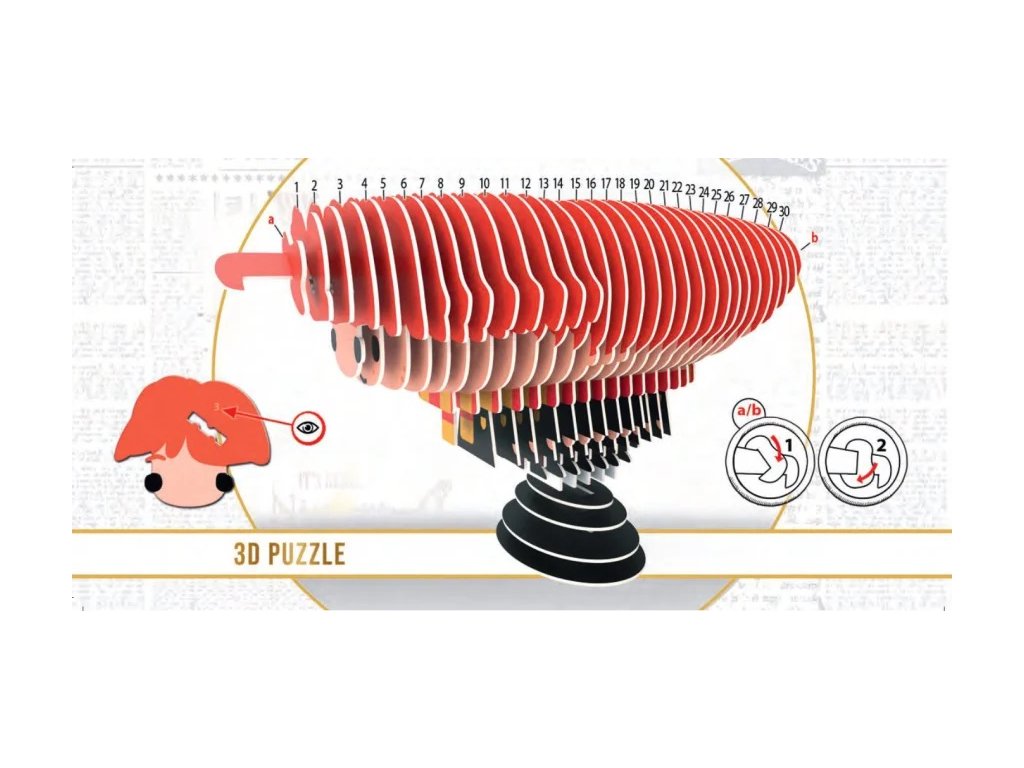 - 3D puzzle z předseknutých vrstev kartonu v plném barevném provedení.