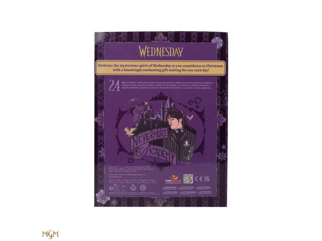 Naplňte svou sváteční sezónu nádechem temnoty, kterou je Wednesday Addams. Náš nový adventní kalendář musí mít každý, kdo hledá netradiční zpestření tradičního vánočního odpočítávání. Od psacích potřeb po strašidelně krásné doplňky, tato kolekce vánočních dárků udělá z každého dne příjemné překvapení. Každý den odemkněte nový poklad, pečlivě vytvořený, aby vás přenesl hlouběji do sálů Akademie Nevermore nebo do lákadel středečního světa.Nechte kouzlo letošních Vánoc provázat se Wednesday Addams a nechejte odpočítávání začít. Balení obsahuje 24 položek (Ponožky, guma, visačka na zavazadla, pero, pravítko, memo tab, měřicí páska, washi páska, vlajka, samolepky svítící ve tmě, taška, zvýrazňovač, špendlík, samolepky, pouzdro na šňůrku, klíčenka, magnet, náramek, tkané nášivka, kancelářská sponka, akrylová ozdoba, lentikulární záložka, puzzle, lentikulární odznak).