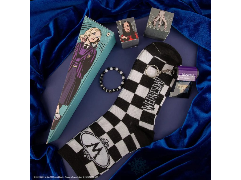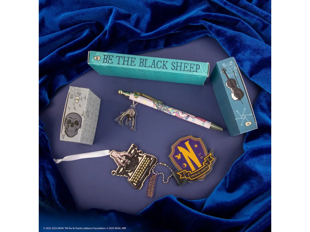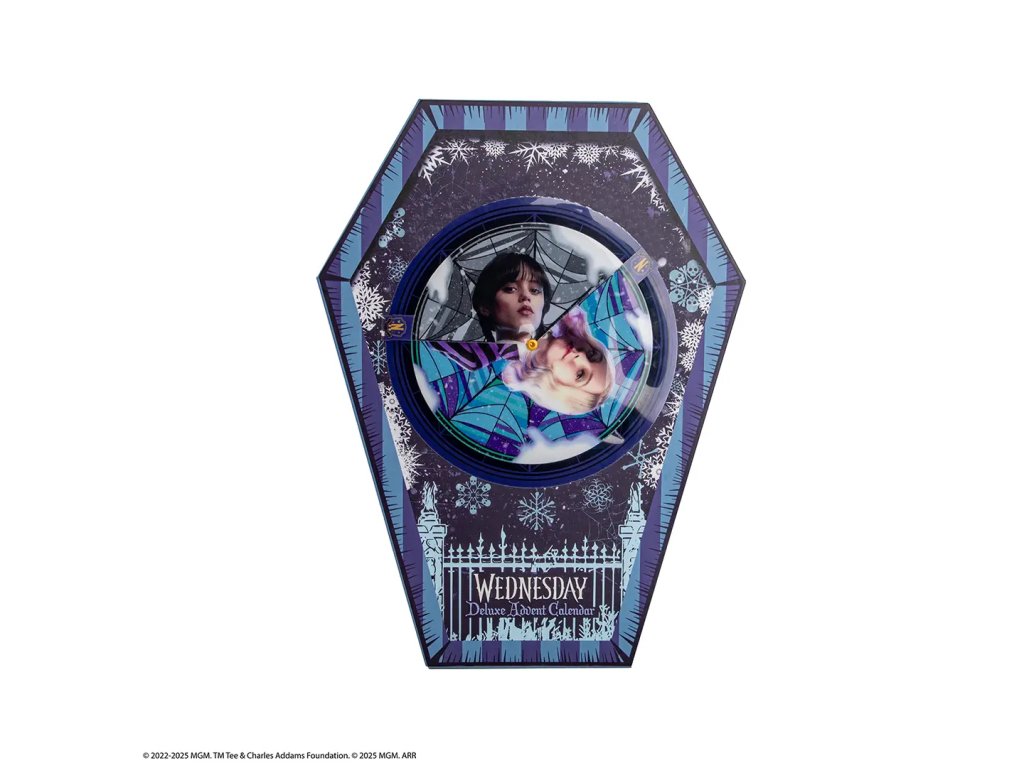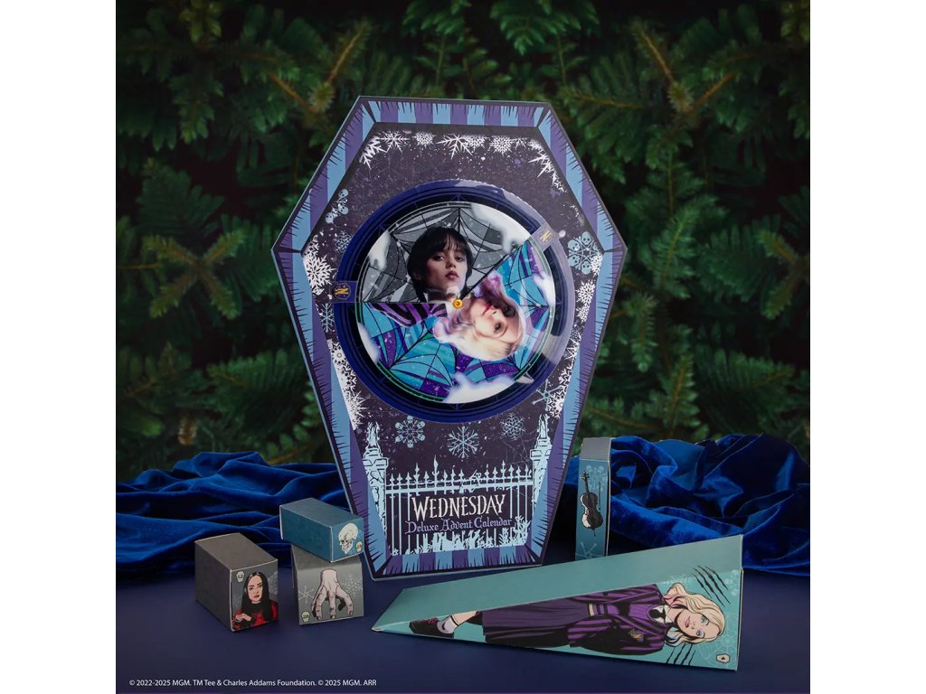 Vstupte do temného světa Wednesday Addams – ikonické postavy z rodiny Addamsovi – pomocí této prémiové edice adventního kalendáře pro rok 2025. Tato exkluzivní krabička-truhla obsahuje 24 oficiálně licencovaných produktů, které odhalíte postupně každý den. Každý dárek je inspirován mystickou atmosférou Nevermore Academy a osobností Wednesday jako studentky a milovnice tajemství, a její spolubydlící a parťačkou Enid.