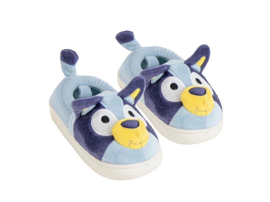 Pohodlné a měkké dětské pantofle s motivem Bluey, navržené pro nošení v interiéru.