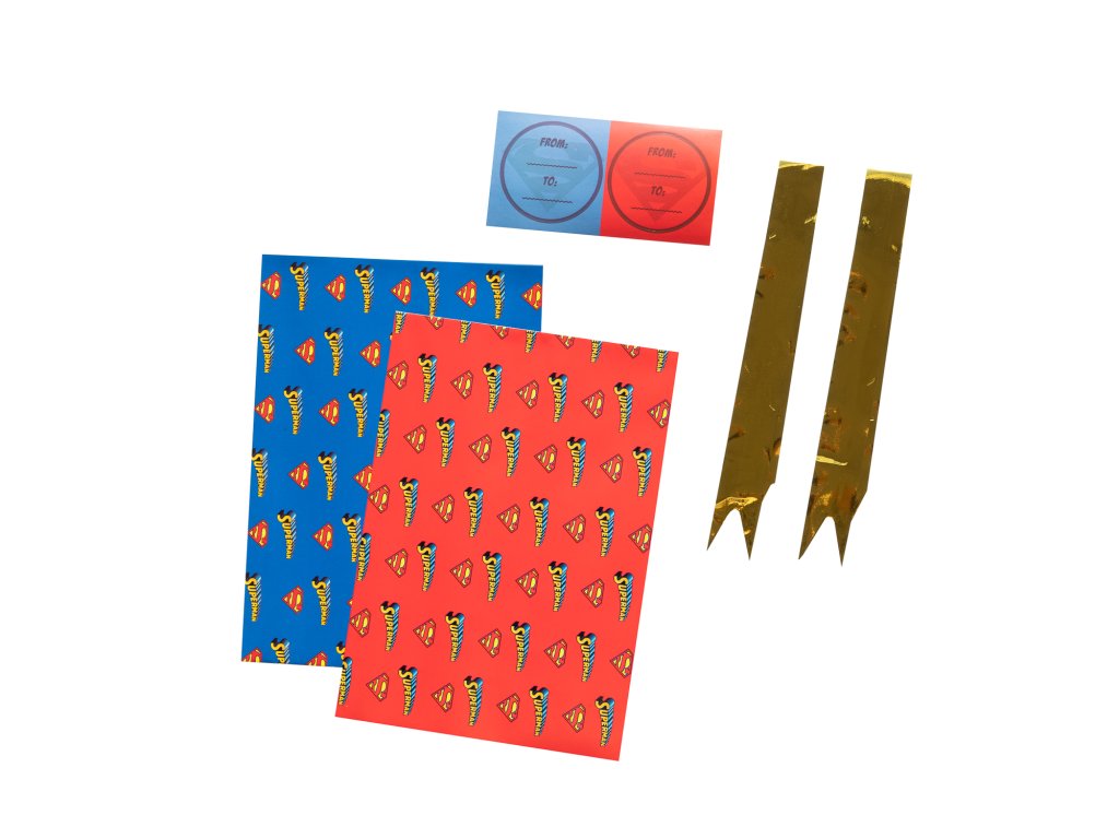 Sada 2 archů skládaného dárkového papíru 50 x 70 cm, 70 g/m2. Včetně papírové stuhy a samolepek.Doplňkové parametry