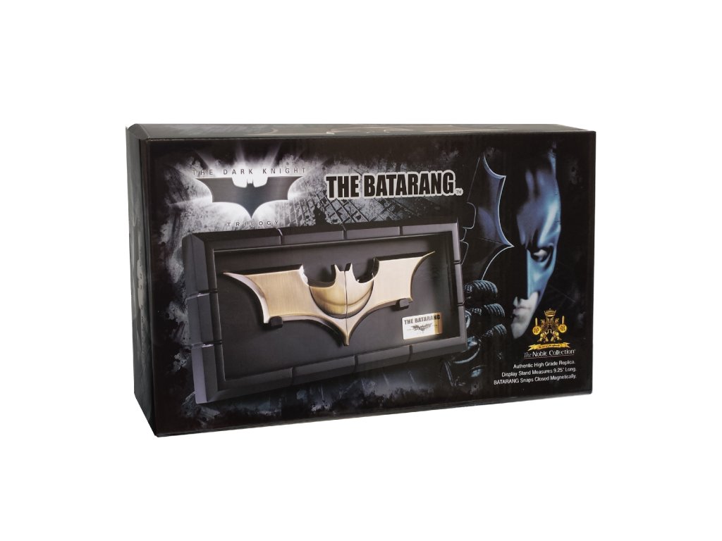 Vrhací zbraň Batarang je vyrobena ze zlatého hliníku a měří cca 23 cm na délku. Toto je replika, nikoli zbraň.