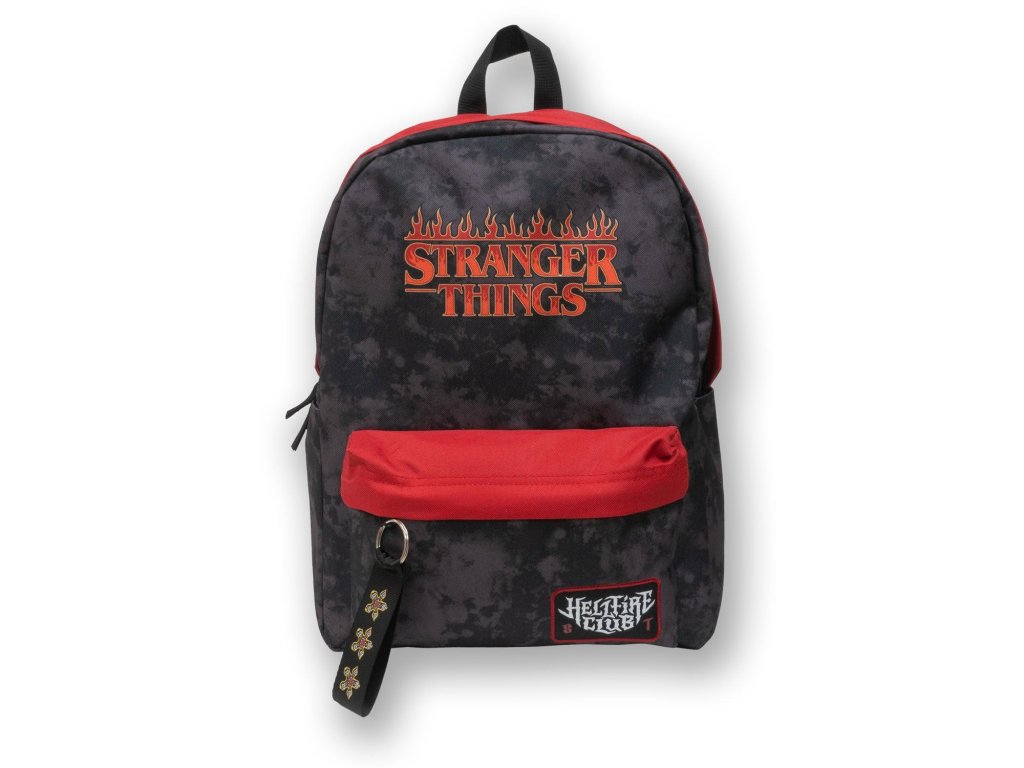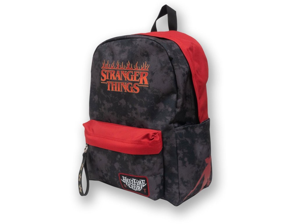 Stylový batoh inspirovaný světem Stranger Things, nesoucí motivy legendárního klubu Hellfire v červené a černé kombinaci. Tento model kombinuje ikonický design s praktickým provedením vhodným pro školu, výlety i běžné nošení.