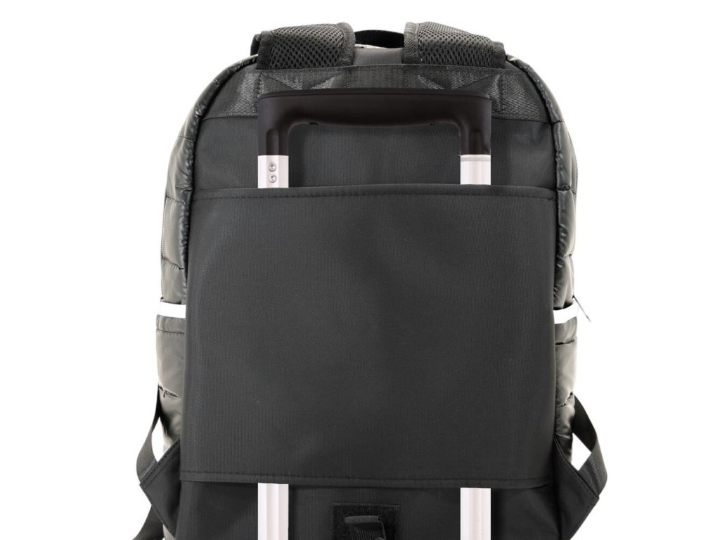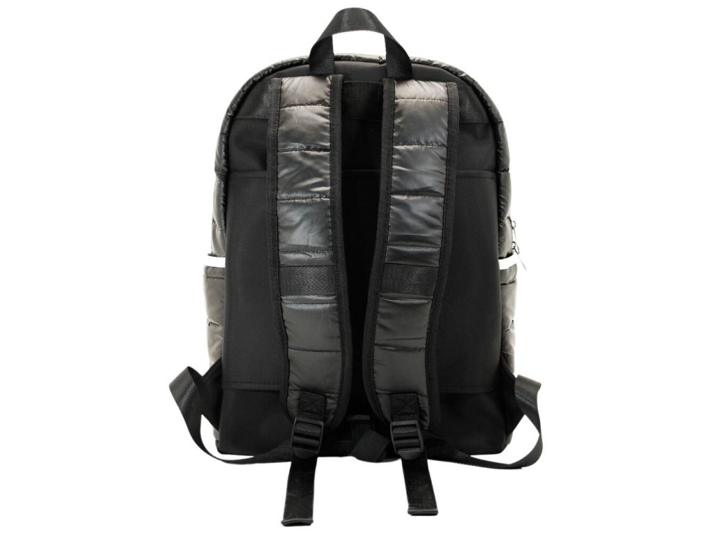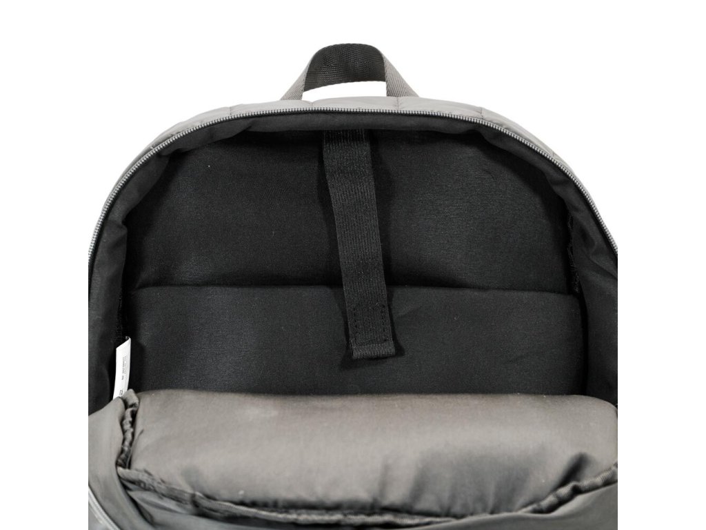 Polstrovaný batoh s přední kapsou na zip a dvěma bočními otevřenými kapsami. Vnitřek s podšívkou a kapsou.