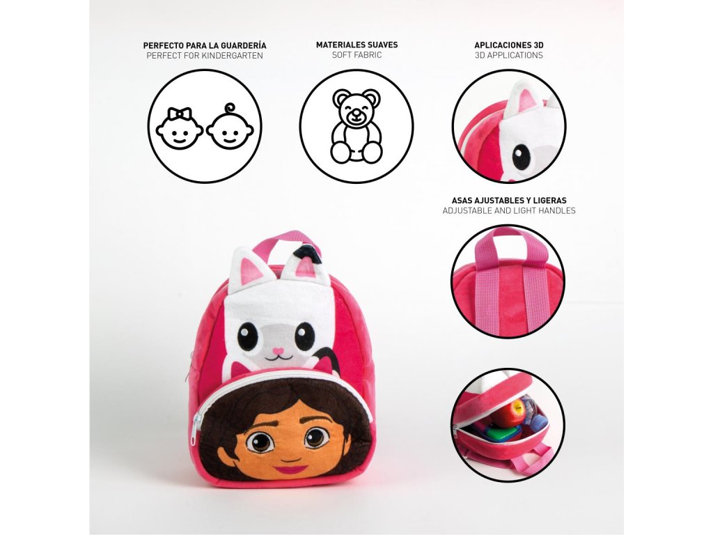 Roztomilý dětský batoh s postavičkou z oblíbeného seriálu Gábinin kouzelný domek je ideální volbou pro nejmenší školáčky. Díky kompaktní velikosti a lehkému provedení se pohodlně nosí i těm nejmenším dětem.