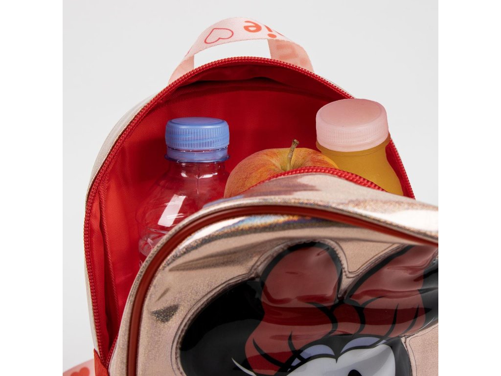 Dětský červený batoh s motivem Minnie potěší malé fanoušky Mickey Mouse. Nabízí dostatek prostoru pro školní potřeby nebo drobnosti a veselý design dodá každému dni hravý a barevný nádech.Doplňkové parametry