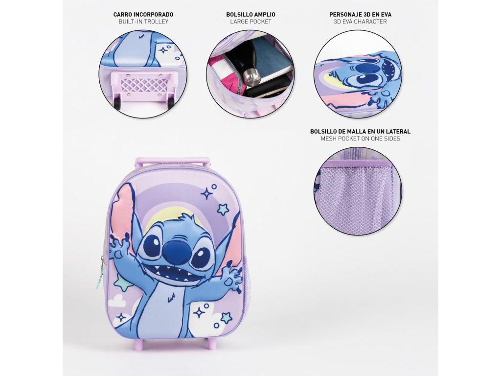 Batoh dětský s kolečkama a 3D motivem, Stitch