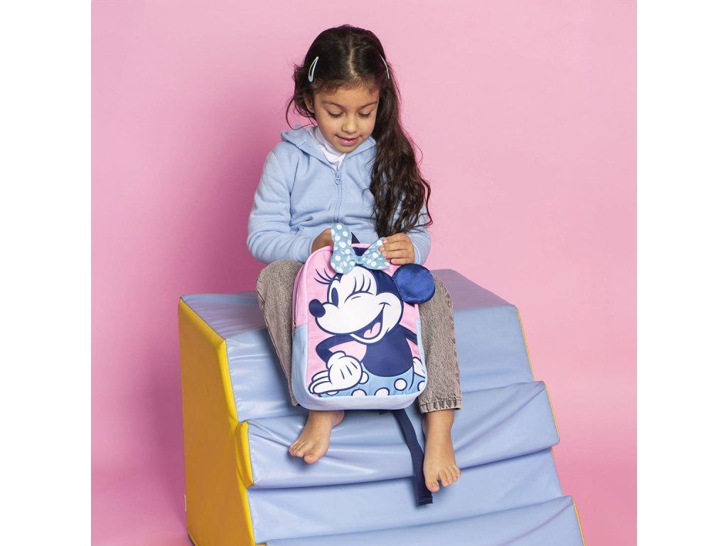 Dětský školní batoh Minnie Mouse v růžové barvě je praktický a odolný, vyrobený ze 100 % polyesteru. Rozměry ho činí ideálním pro školní potřeby i každodenní nošení.Doplňkové parametry