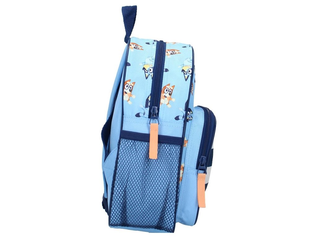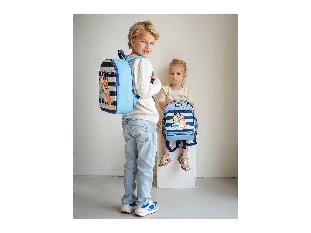 Vyraz do každodenních dobrodružství s tímto veselým modrým batohem „Jump Into Fun“ inspirovaným populárním seriálem Bluey. Barevný a hravý motiv nadchne malé fanoušky a přinese radost nejen při cestě do školy, ale i na výlety či volný čas. Praktický, odolný a stylový. Ideální společník pro děti.