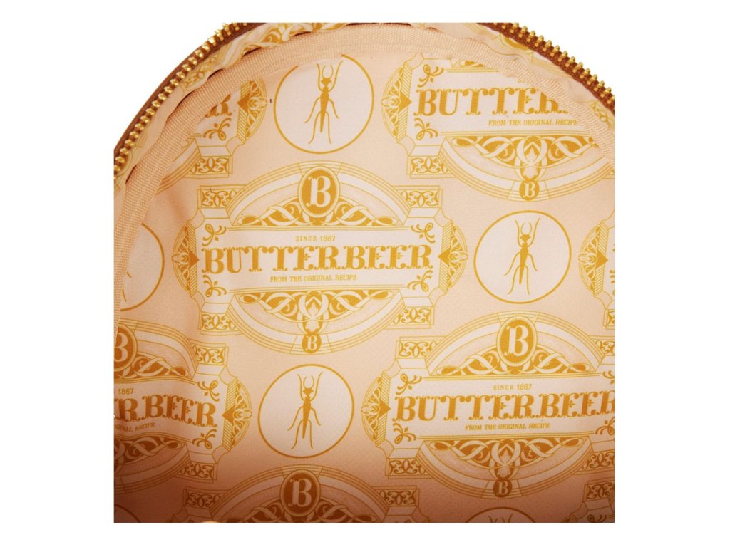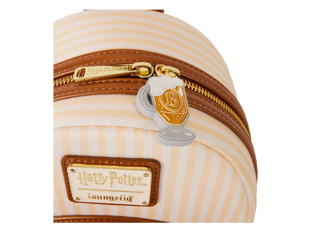Kouzelný stylový batoh pro všechny čarodějnice, kouzelníky a mudly, kteří zbožňují máslový ležák! Dominantou této tašky je kruhová přední kapsa, která vypadá jako sud od máslového ležáku se zlatým fóliovým logem a tvarovaným kovovým přívěskem ve tvaru kohoutku. Krásně ladí se žluto-krémovým pruhovaným pozadím na zbytku batohu, na kterém lze najít i další magické detaily, jenž odkazují na oblíbený kouzelnický nápoj z Harryho Pottera. A to nejlepší? Voní po máslovém ležáku!