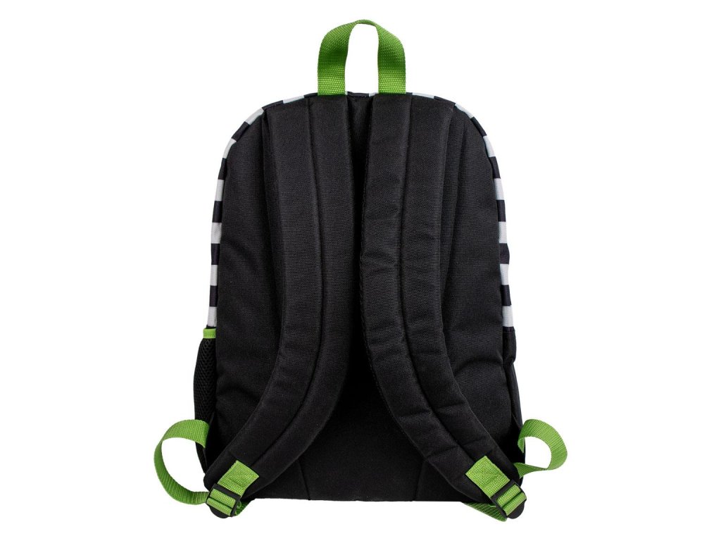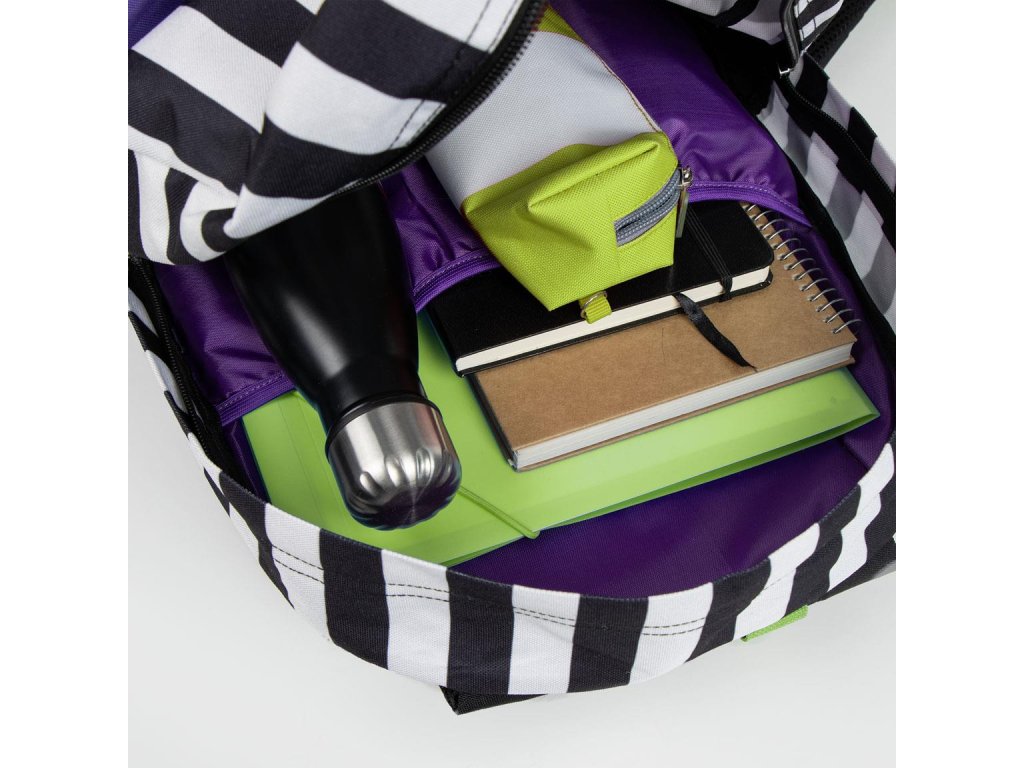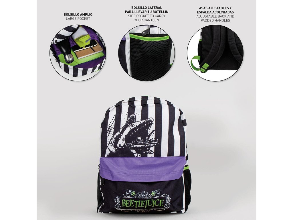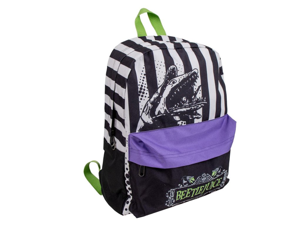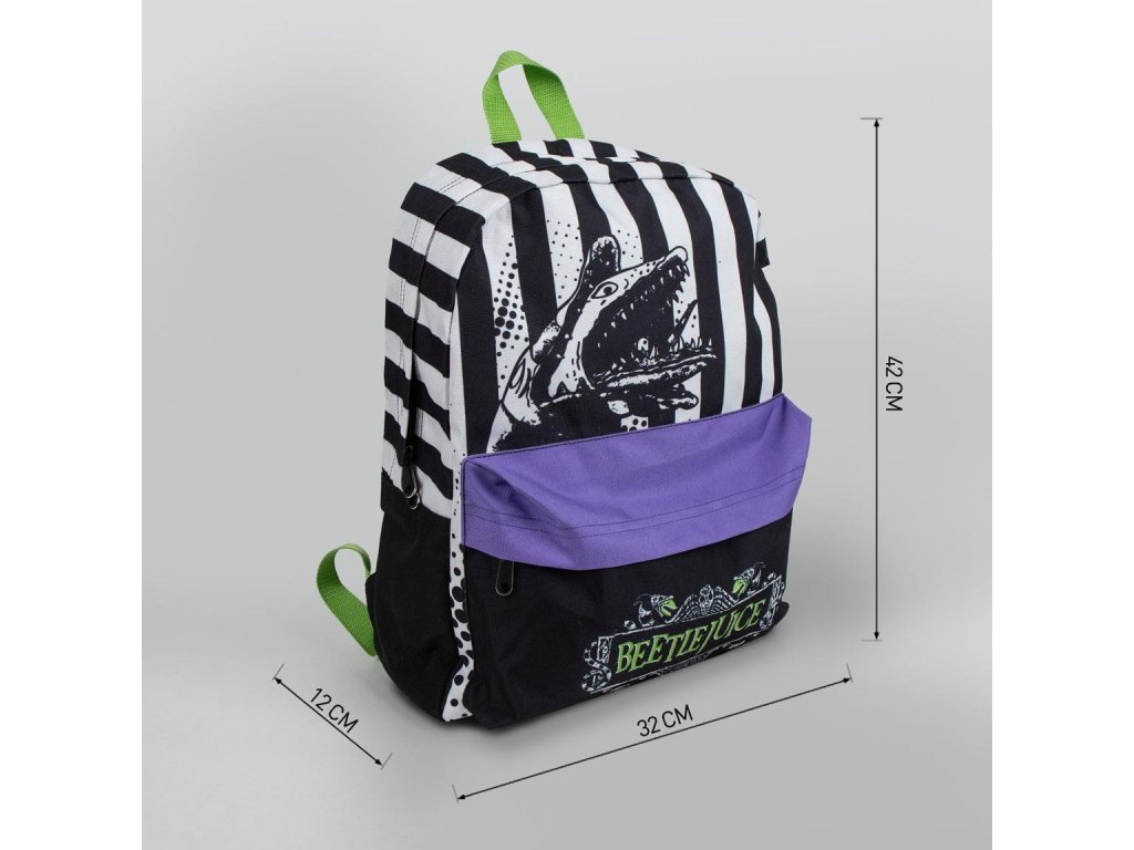 Originální batoh, který spojuje výrazný černo-bílý pruhovaný design s tajemnou atmosférou kultovního filmu Beetlejuice. Dominantní hadí motiv dodává celému vzhledu osobitost a temný styl. Je ideální pro fanoušky alternativní módy, filmových ikon i výrazných doplňků.Doplňkové parametry