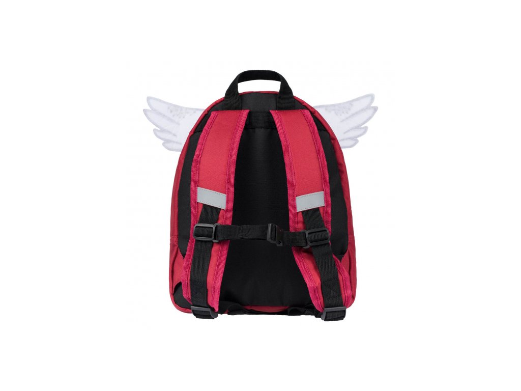Předškolní batůžek s jedním hlavním prostorem a přední kapsou. Je vyroben z voděodolného materiálu, má nastavitelné popruhy a polstrovaná záda. Je lehký a přitom pevný, takže vhodný třeba i na rodinné výlety.