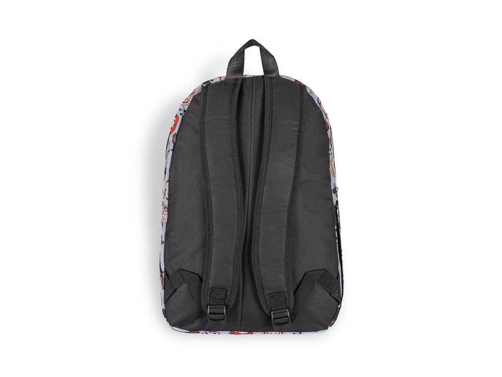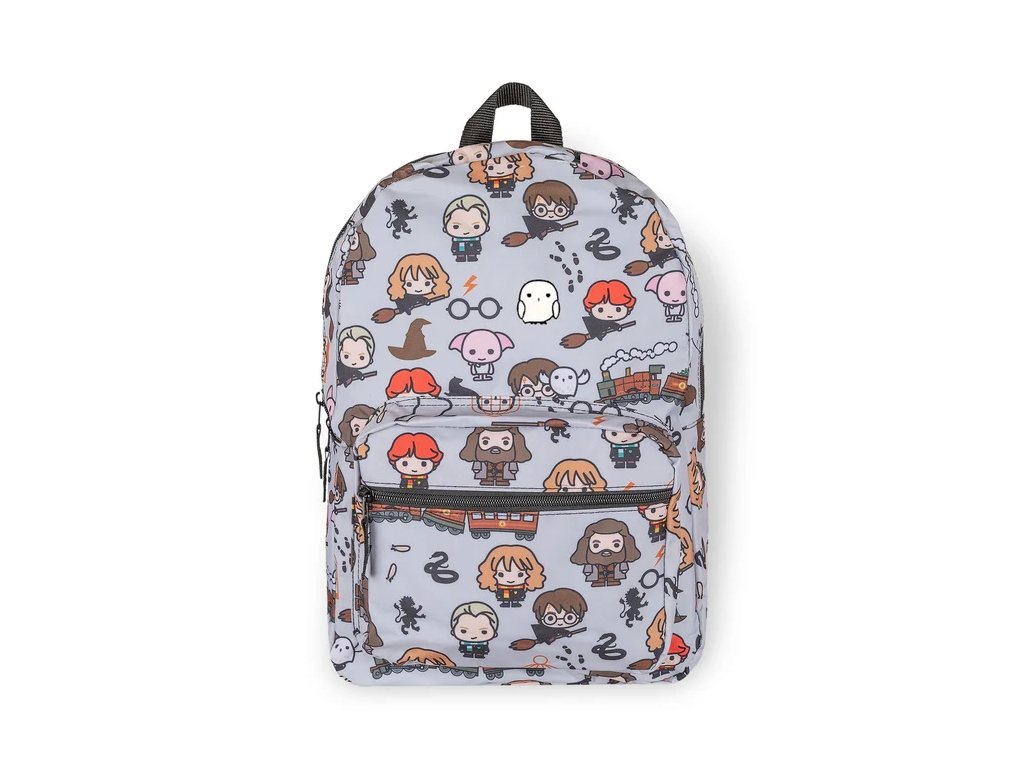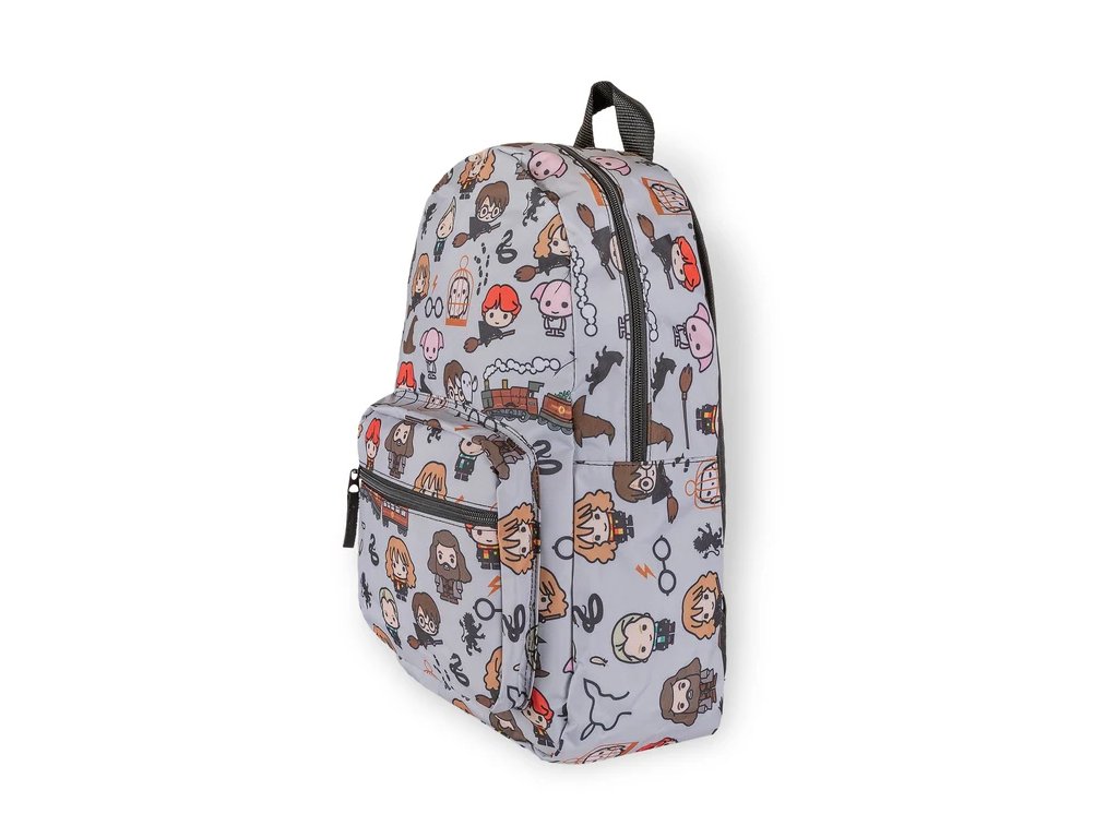 Atraktivní šedý batoh s přední kapsou na zip a grafikou Chibi Characters (postavy z Harryho Pottera) nabízí polstrovaná záda, prostornou hlavní kapsu, menší kapsu pro drobnosti a cennosti, nastavitelné popruhy a praktické ucho pro pohodlné nošení.