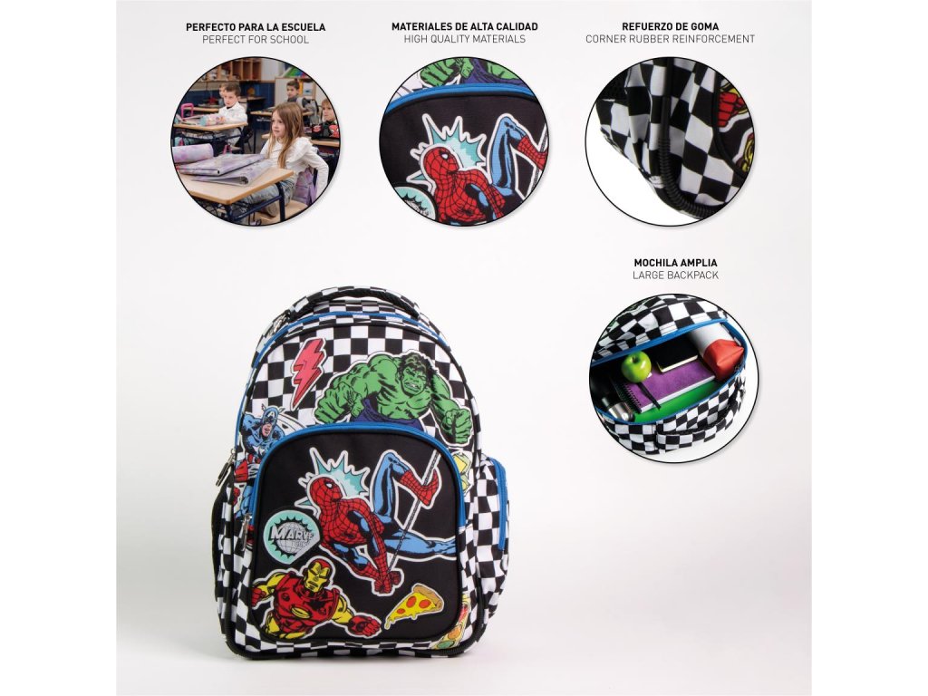 Černobílý školní batoh s motivem Avengers potěší všechny malé fanoušky superhrdinů. Nabízí dostatek prostoru pro školní potřeby a svým výrazným designem dodá každému dni dobrodružný a hravý nádech.Buďte první, kdo napíše příspěvek k této položce.