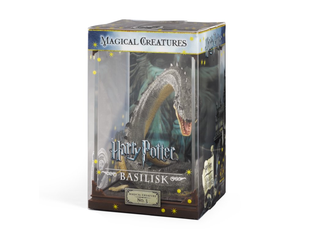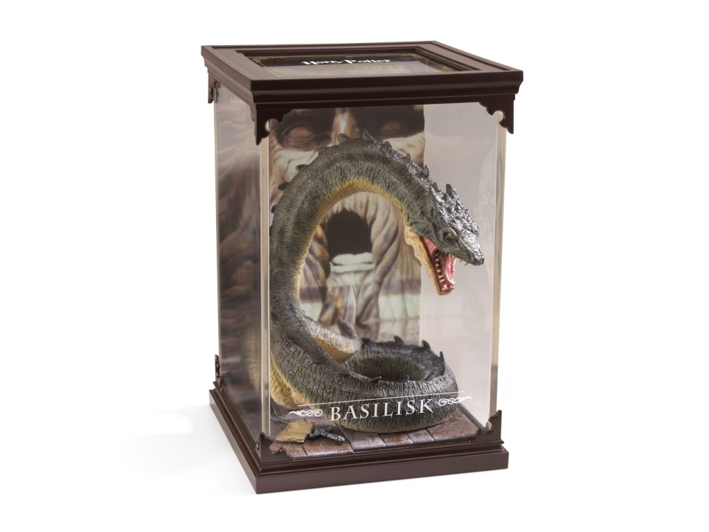 Sběratelská figurka v průhledné vitríně - Bazilišek. Jde o obřího hada, kterého před tisícem let zavřel Salazar Zmijozel do Tajemné komnaty v Bradavické škole čar a kouzel.