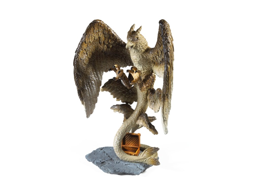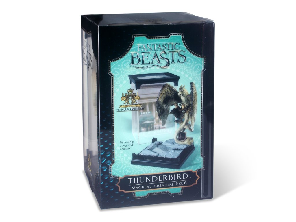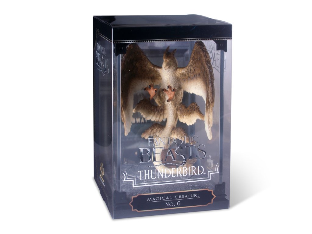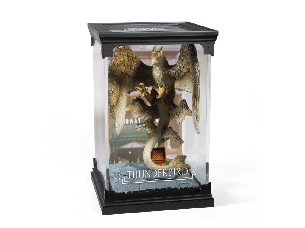 Sběratelská figurka v průhledné vitríně - Bouřlivák (Thunderbird). Hlavním důvodem návštěvy Spojených států bylo pro Newta "Mloka" Scamandera navrátit Hromového ptáka jménem Frank zpátky do jeho přirozeného prostředí. Hromoví ptáci jsou velcí, úzce příbuzní s fénixem a při letu mohou působit bouři, z toho také vychází jejich název (Thunder - bouře, bird - pták).