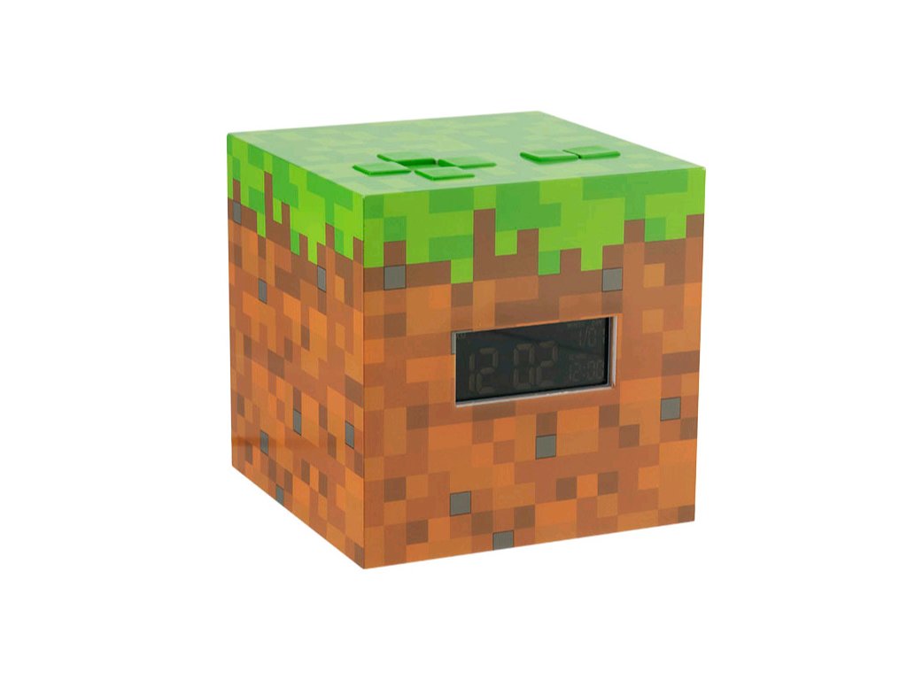 Budík s lampičkou 3D Blok trávy, Minecraft