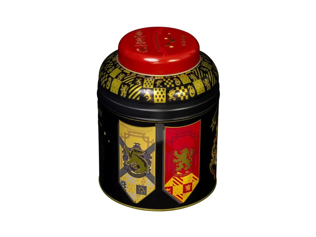 Voláme všechny čarodějky, čaroděje a mudly! Vyjádřete svou náklonost k bradavické škole s touto plechovnou s osmdesáti porcemi čaje. Hlavním motivem plechovky je bradavický erb. Nebelvírský lev, Havran z Havraspáru, Jezevec z Mrzimoru a Zmijozelský had jsou rovněž zastoupeni. Netřeba kouzelnické hůlky - plechovka jsou opatřena víčkem, které se snadno otevírá a uchovává tak čaj čerstvý, vždy když potřebujete kouzelnou vzpruhu! Zažijte kouzlo Harryho Pottera™ s šálkem čaje.