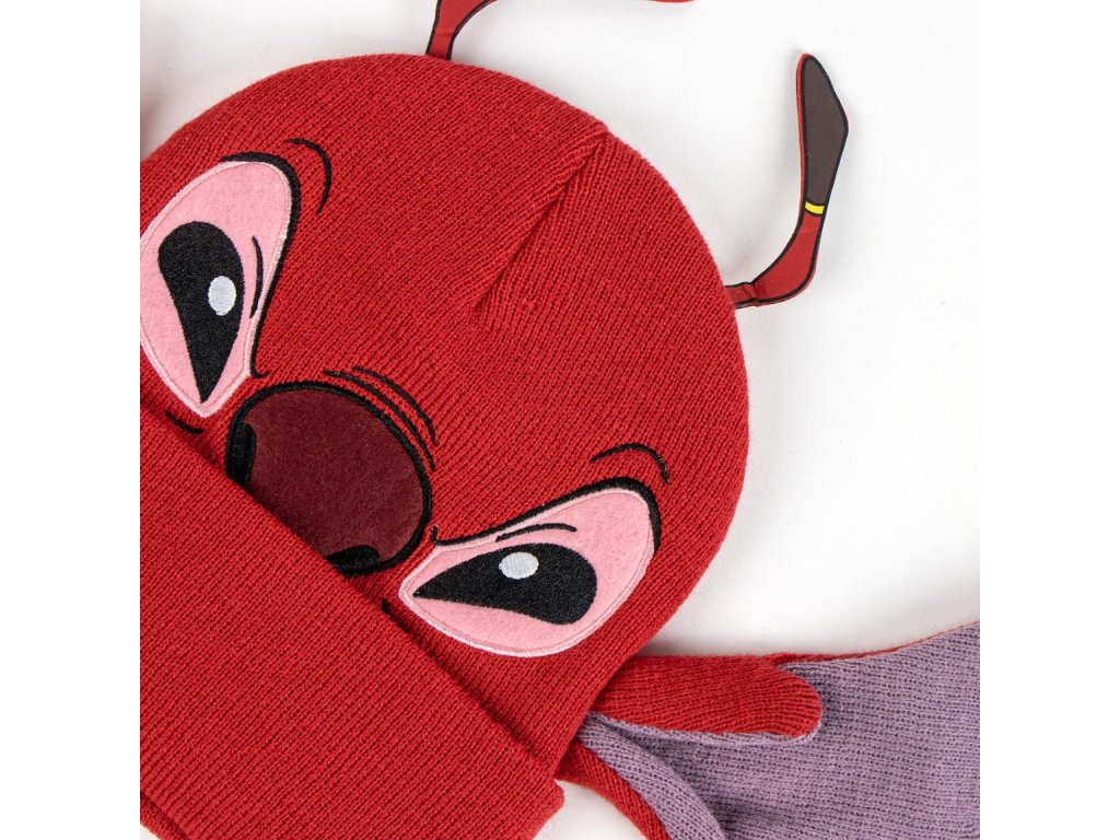 Dětská červená čepice s ušima Stitch je roztomilý a hravý doplněk pro malé fanoušky oblíbené Disney postavičky. Měkký a příjemný materiál zajišťuje pohodlí a teplo během chladných dnů.Doplňkové parametry
