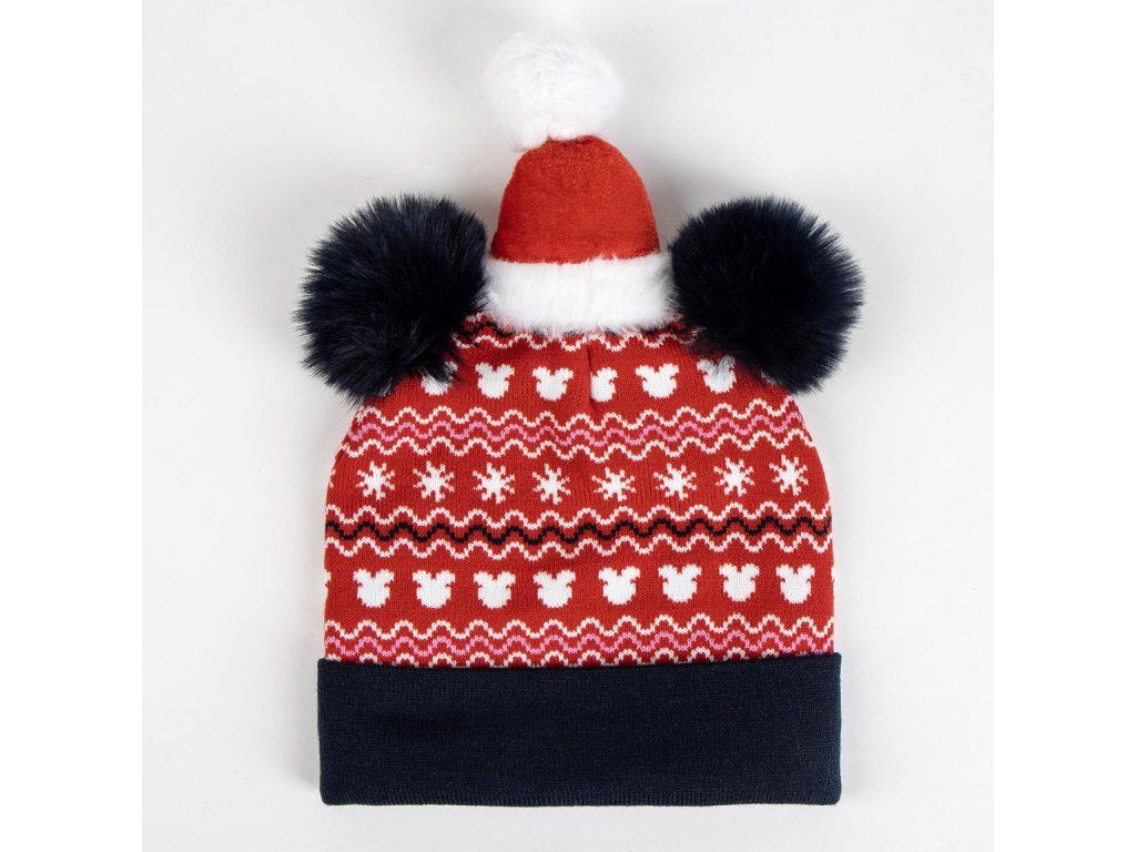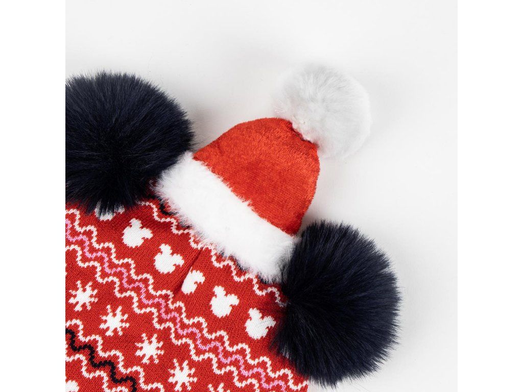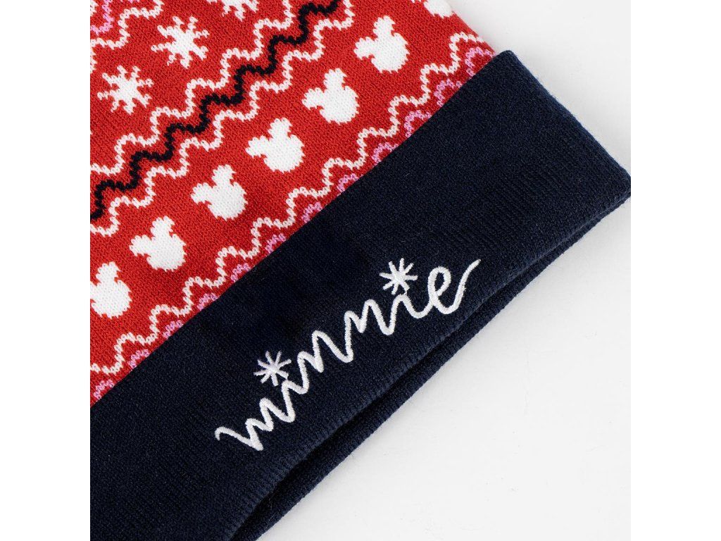 Vánoční čepice s bambulemi a motivem Minnie je stylový a hravý doplněk pro malé fanoušky světa Disney. Měkký a hřejivý materiál zajišťuje pohodlí a dodává outfitu sváteční atmosféru.Doplňkové parametry