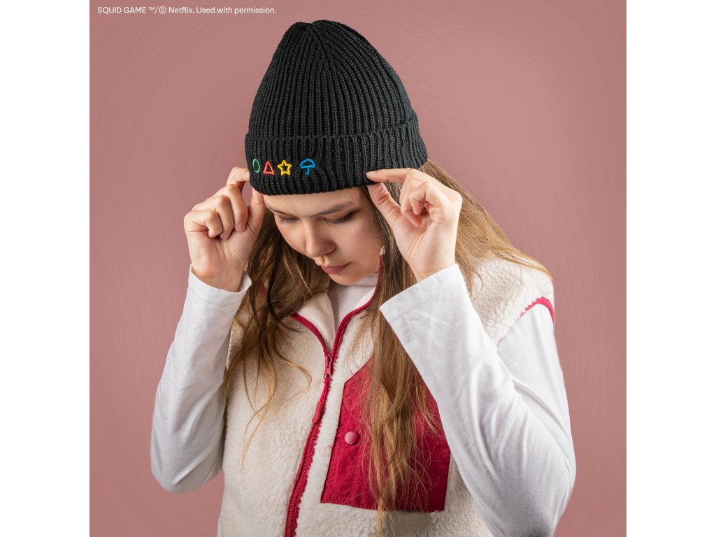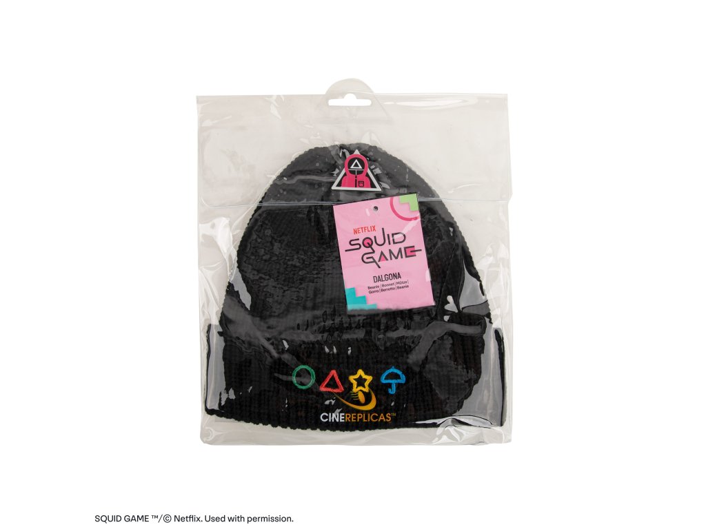 Teplá a pohodlná čepice, je vyrobena z měkkého akrylu, vhodná i na celodenní nošení. Černá čepice Dalgona je zdobená barevnými tvary dalgona sušenek a hodí se pro všechny věkové kategorie i pohlaví.