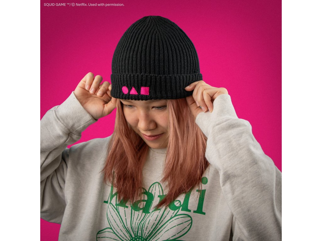Čepice, která se hodí ke každému outfitu. Vyrobena z měkkého akrylu, ideální pro chladnější měsíce. Na přední straně má vyšité logo Squid Game, které ukáže tvou oblibu tohoto seriálu.