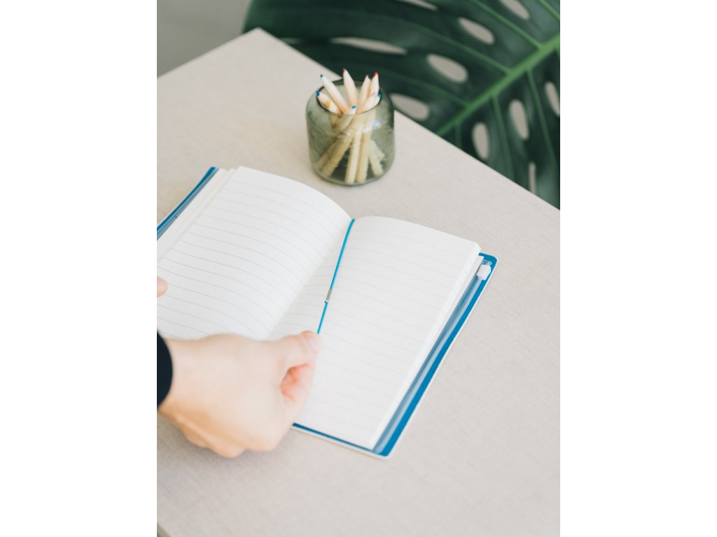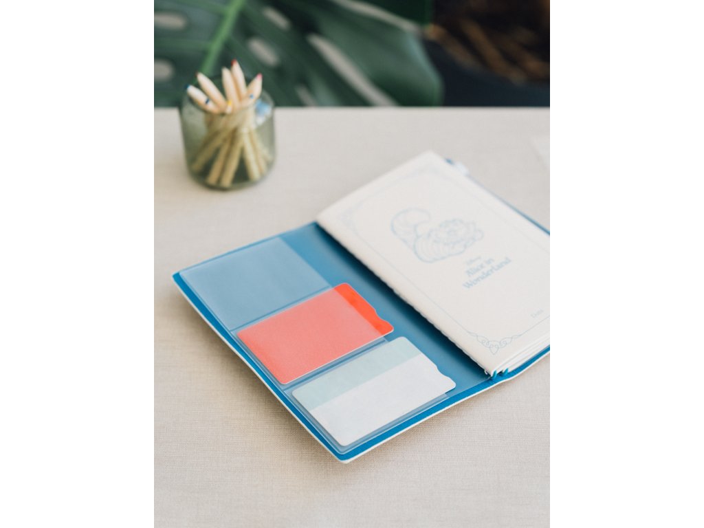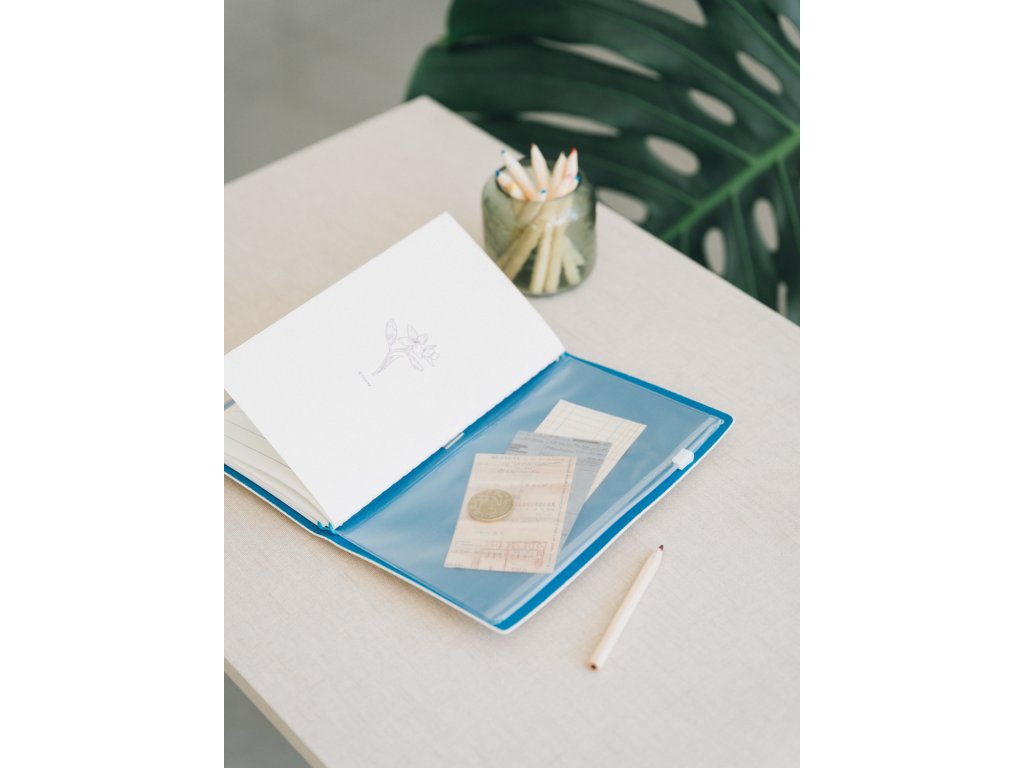 Cestovní zápisník s měkkým polyuretanovým obalem. Obsahuje prostor na karty, dva vyměnitelné sešity s 80 listy (160 stran) a dvěma různými typy listů (s odrážkami a linkovanými) a kapsu na vnitřní straně zadní strany. Má gumičku a polyuretanové zapínání. Obálky měří 12 x 19,5 cm a vnitřní strana 10,5 x 18,5 cm.Doplňkové parametry