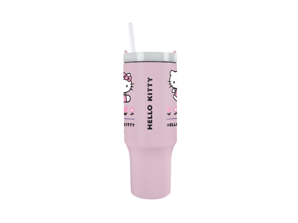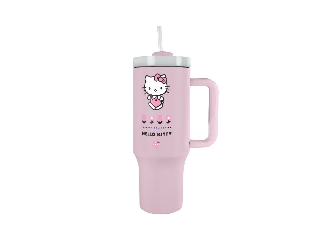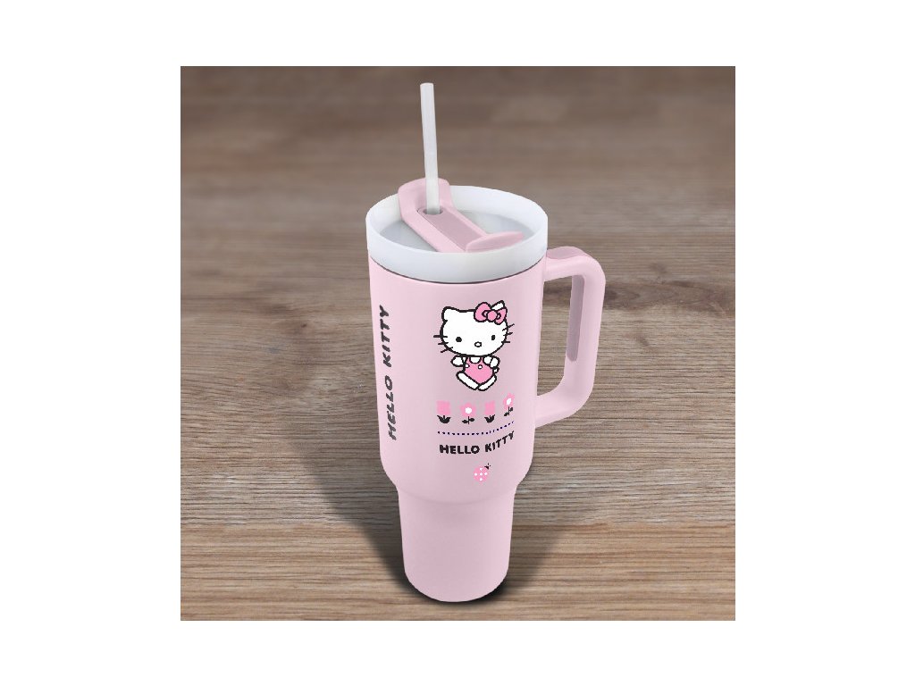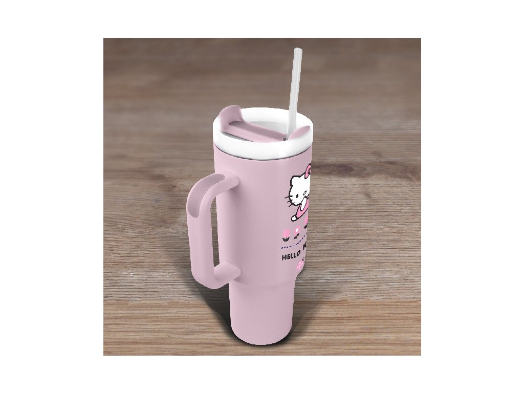Cestovní hrnek růžový s brčkem, Hello Kitty