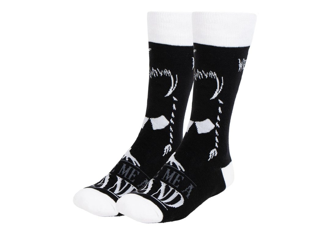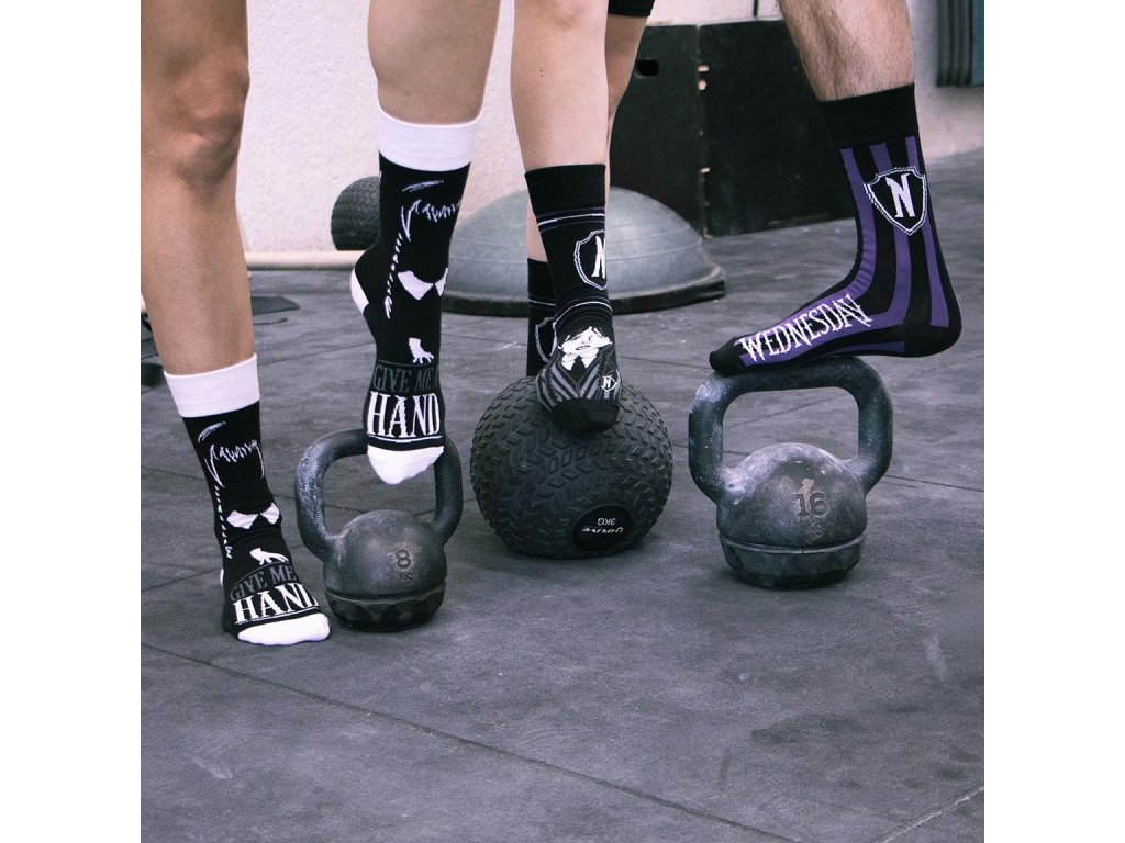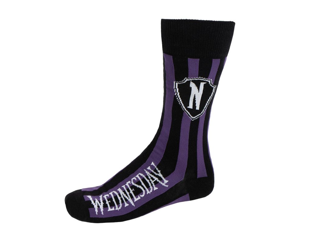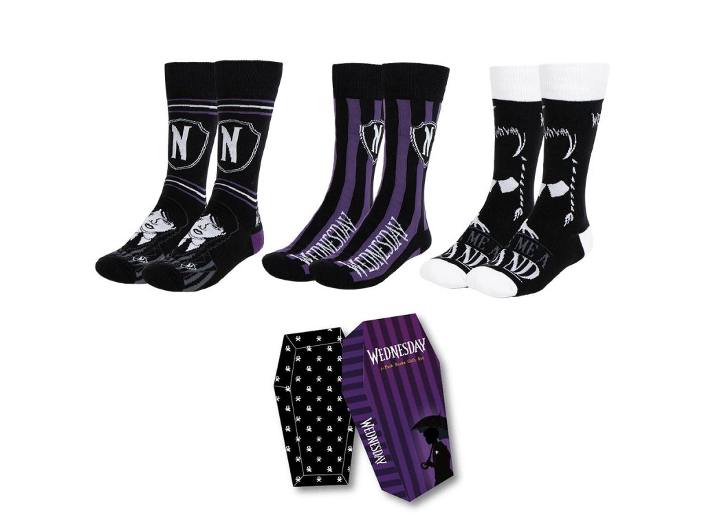 Super ponožky s parádním motivem oblíbeného seriálu na Netflixu Wednesday, balené v netradiční krabičce ve tvaru rakve – zaujme na první pohled. Vhodný dárek pro každého věrného fanouška či vyvrhele! Měj nožky v teple v těchto stylových ponožkách, které tě ochrání před vlezlým chladem.Doplňkové parametry