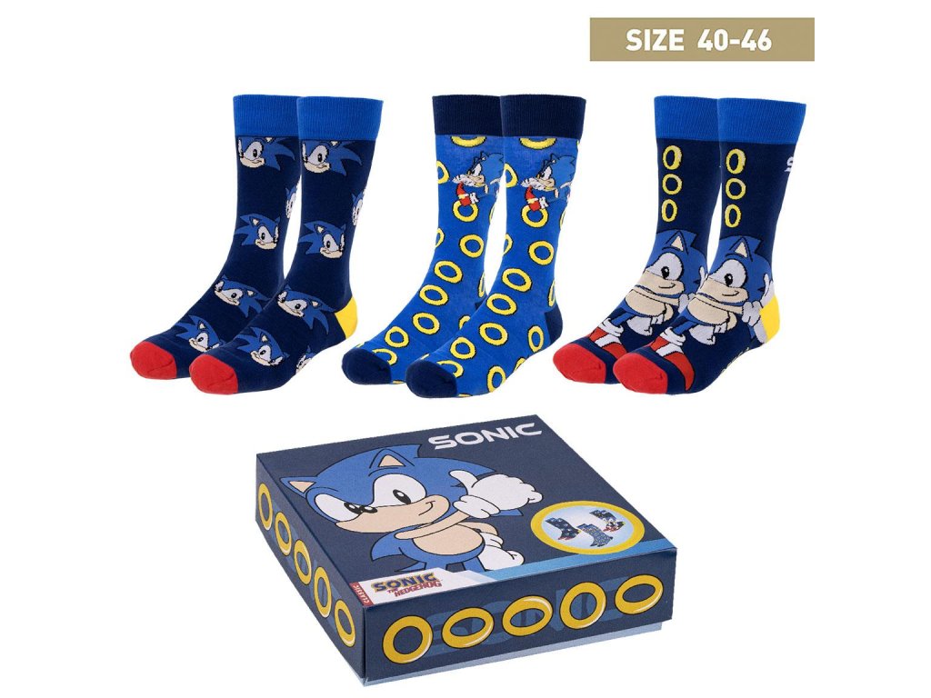 Dárková sada modrých ponožek, 3 ks, Sonic