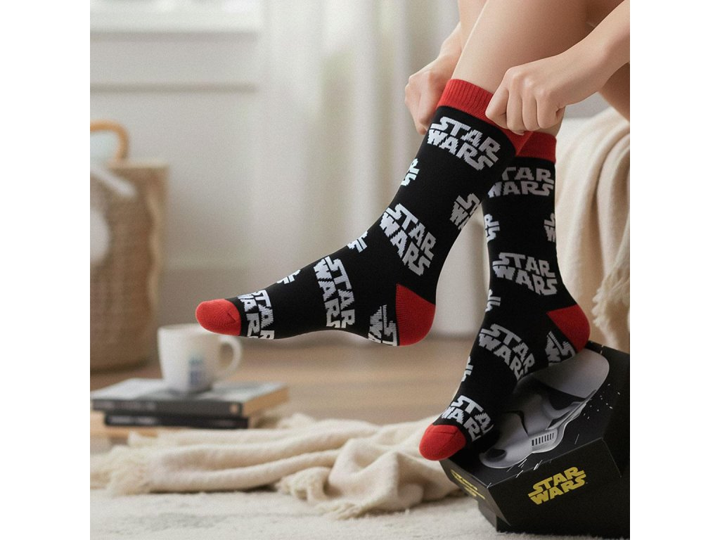 Doplň svůj outfit ikonickým motivem ze světa Star Wars. Tyto ponožky s oblíbenými postavami a symboly ze slavné filmové ságy potěší každého fanouška galaxie daleko, předaleko. Ať už fandíš světlé, nebo temné straně Síly, tenhle doplněk ti dodá styl i originalitu. Ponožky jsou vyrobeny z pohodlného a příjemného materiálu, vhodného pro každodenní nošení doma, v práci i ve volném čase. Skvěle se hodí také jako dárek pro fanoušky Star Wars všech generací.Doplňkové parametry
