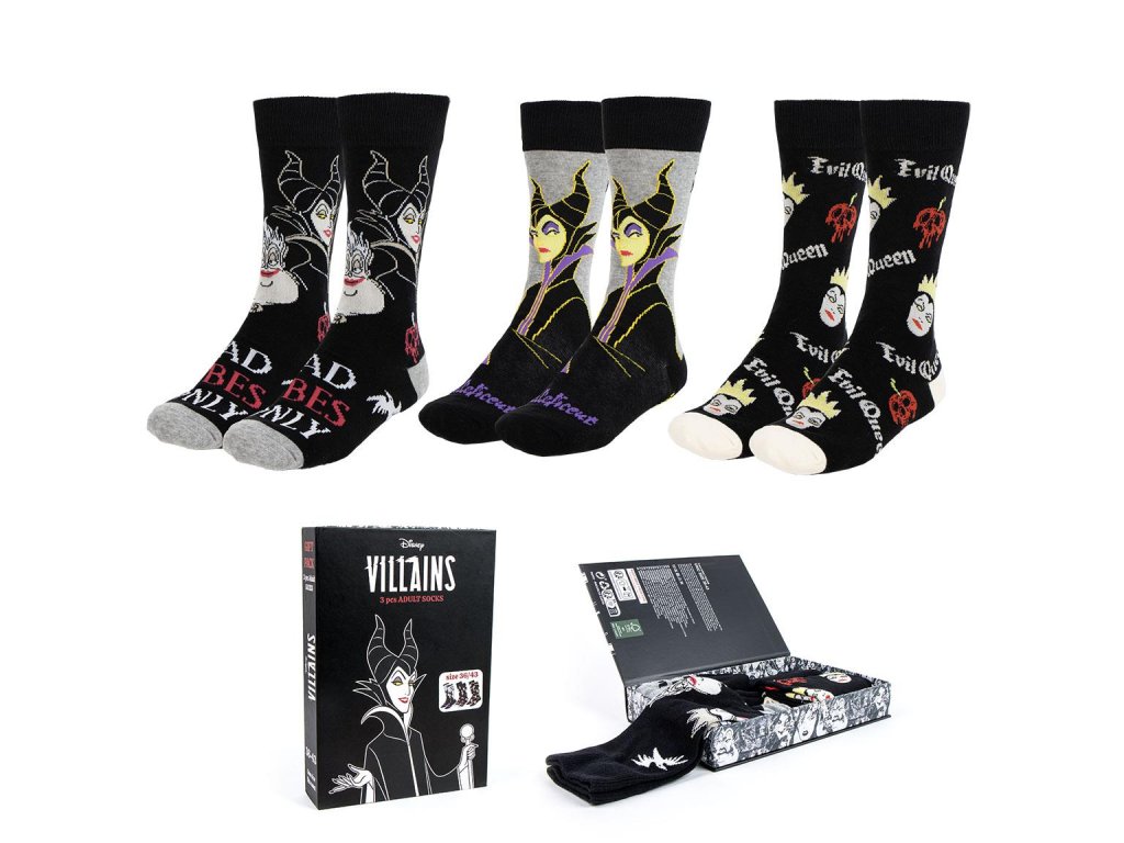 Dárková sada ponožek v černé krabičce, Disney Villains