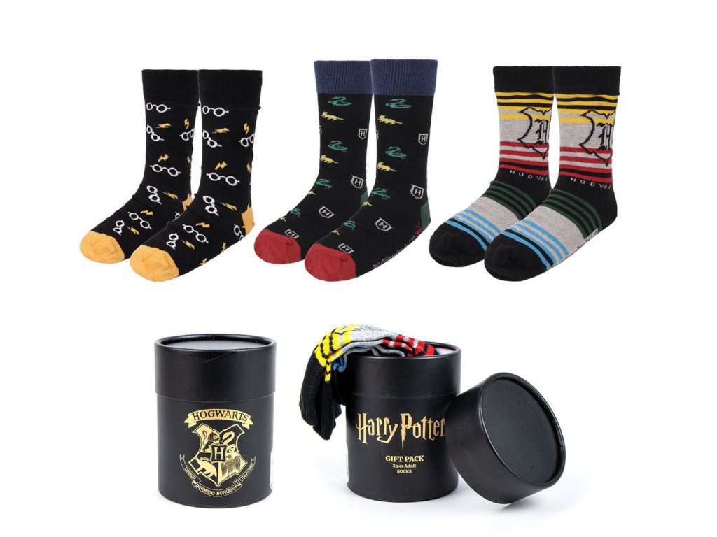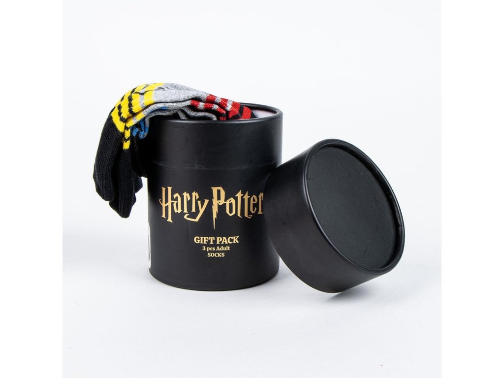 Tři páry vysoce kvalitních klasických ponožek v černém provedení, zabalené v dárkovém tubusu stejné barvy se zlatým bradavickým erbem a nápisem Harry Potter. Ideální jako dárek k narozeninám či jiným příležitostem.