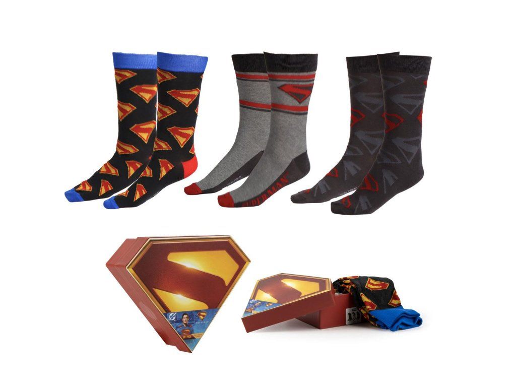 Překvapte své blízké nebo sebe tuto stylovou dárkovou sadou ponožek s motivem Supermana. Sada obsahuje 3 páry ponožek v různých designových variantách, všechny s ikonickým logem legendárního superhrdiny.Doplňkové parametry
