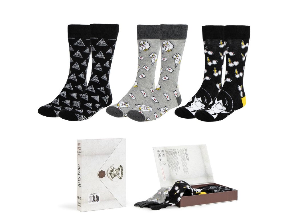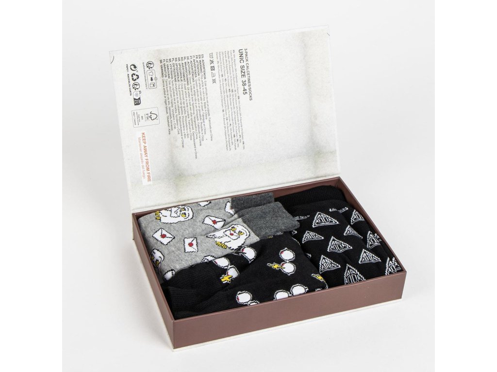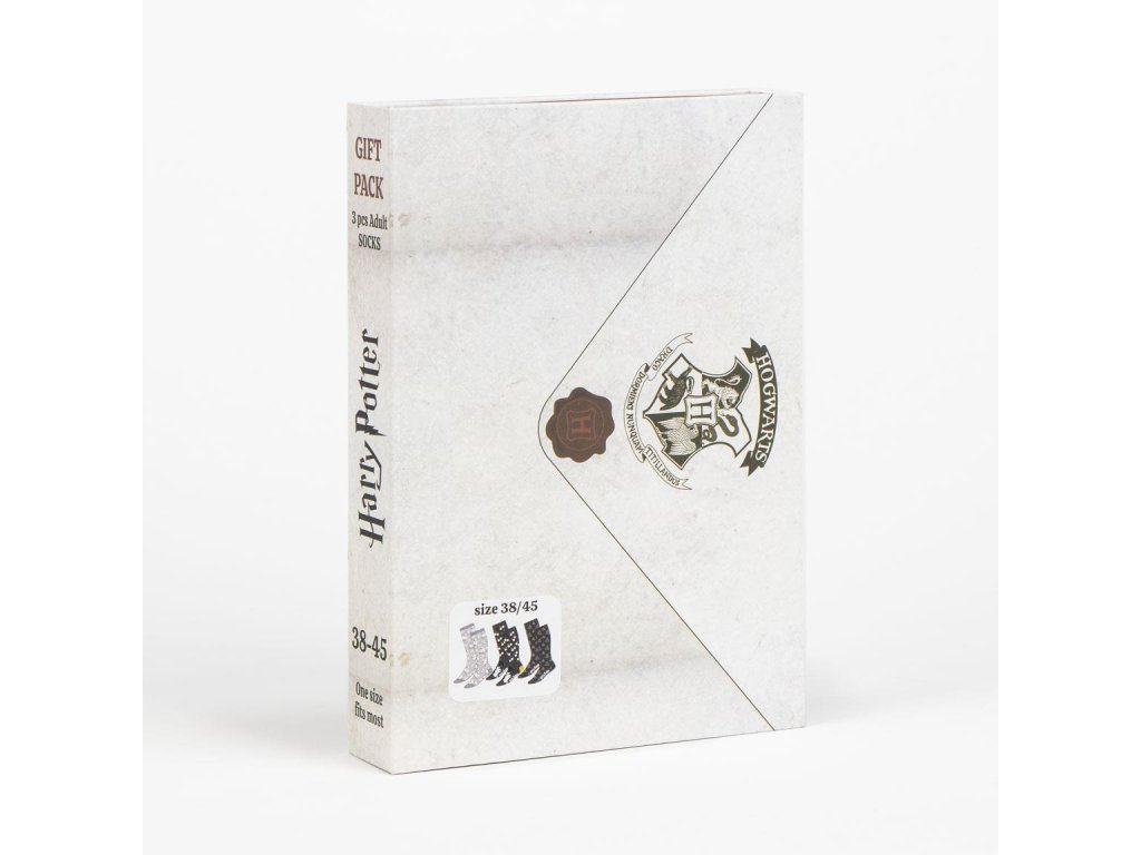 Tři páry vysoce kvalitních klasických ponožek zabalených v dárkové krabičce připomínající přijímací dopis z Bradavic. Ideální jako dárek k narozeninám či jiným příležitostem.