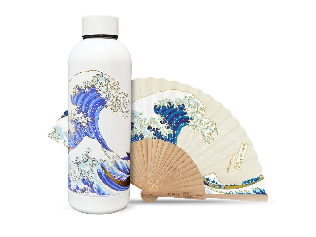 Dárková sada: Termoláhev a vějíř, Velká vlna u Kanagawy, Hokusai
