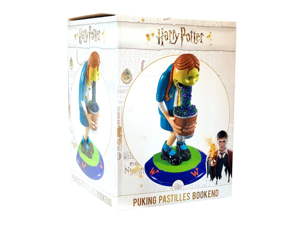 Velmi výrazná a praktická výzdoba každé správně kouzelnické knihovny, zarážka "Dávivé pastilky" (Puking Pastilles), která je inspirována bláznivou dekorací potrhlého obchodu dvojčat Freda a George Weasleyových - Kratochvilné kouzelnické kejkle.