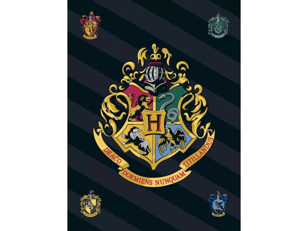 Deka fleecová černá s erbem, Harry Potter