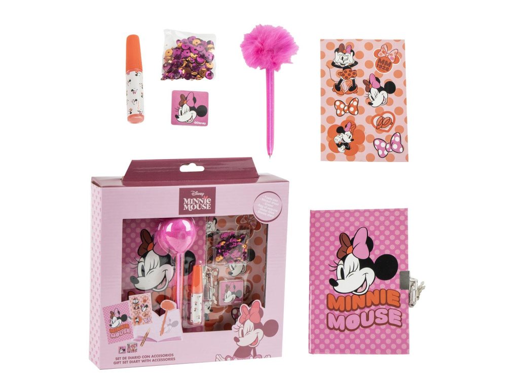 Sada diářů s příslušenstvím s motivem Minnie a Mickey Mouse nabízí prostor pro plánování, zapisování poznámek a organizaci času. Součástí jsou také praktické doplňky, které usnadňují používání a zdobení stránek.Doplňkové parametry