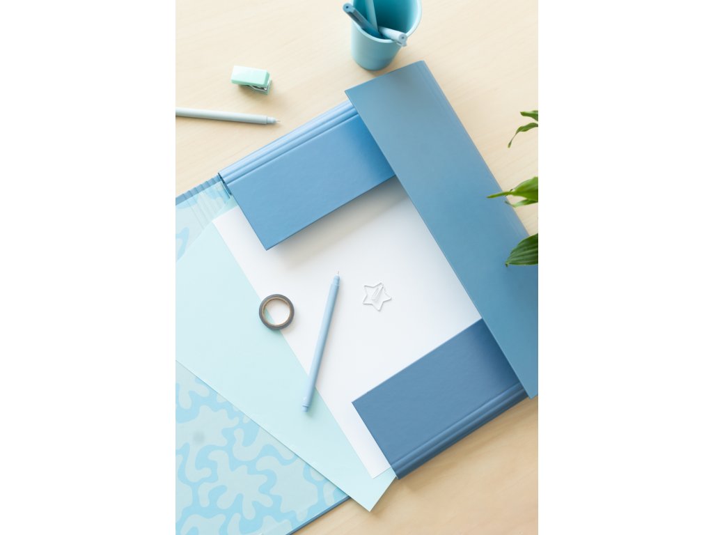Složka má zapínání na gumičku a 2mm kartonovou desku s matným laminovaným papírem o gramáži 150 g/m². Rozměry 34 x 25,5 cm a 3 flexibilní klopy, dvě o rozměrech 23 x 13 cm a jedna o rozměrech 34 x 13 cm.Doplňkové parametry