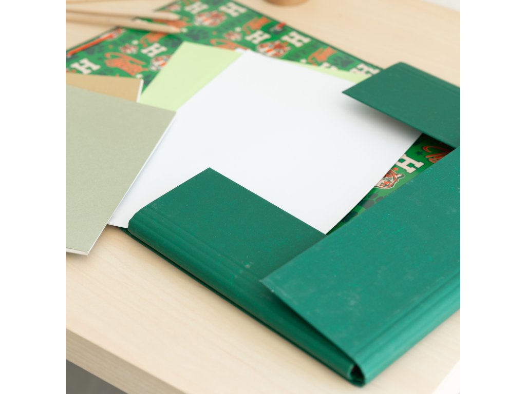 Složka má zapínání na gumičku a 2mm kartonovou desku s matným laminovaným papírem o gramáži 150 g/m². Rozměry 34 x 25,5 cm a 3 flexibilní klopy, dvě o rozměrech 23 x 13 cm a jedna o rozměrech 34 x 13 cm.Doplňkové parametry
