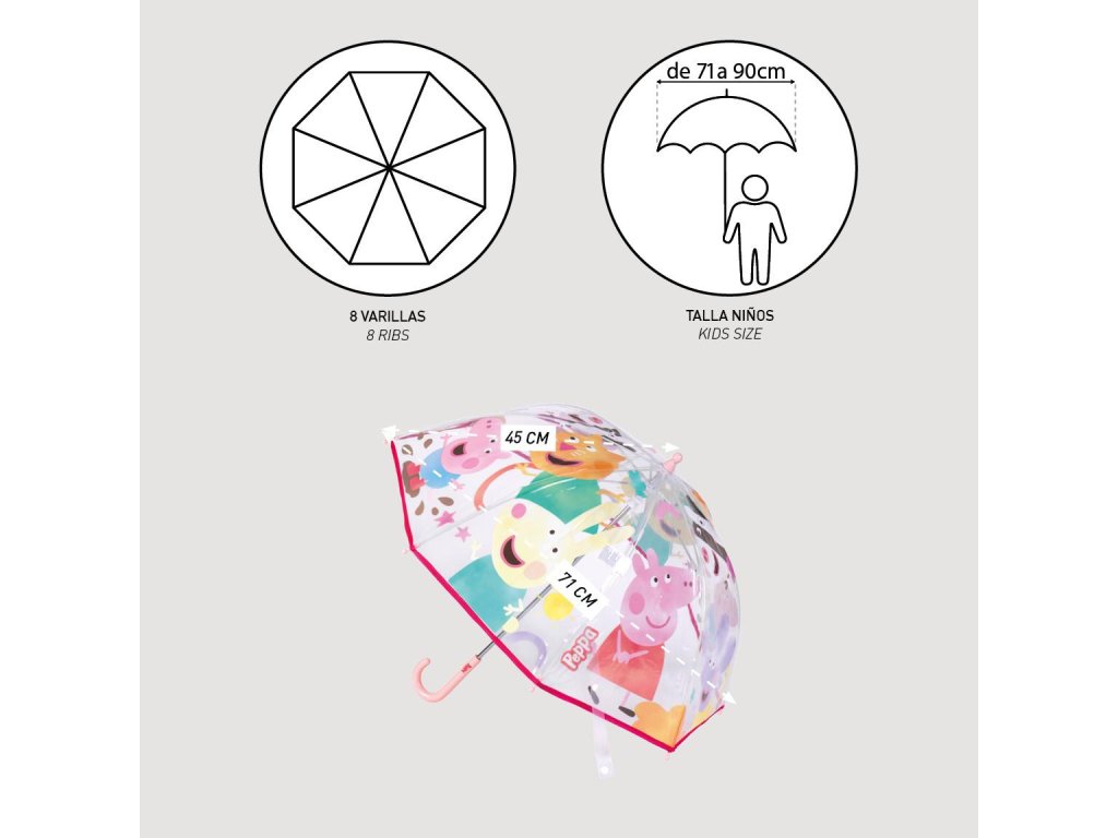 Veselý deštník s motivem Prasátka Peppy a jejích kamarádů rozzáří i ten nejdeštivější den.Doplňkové parametry