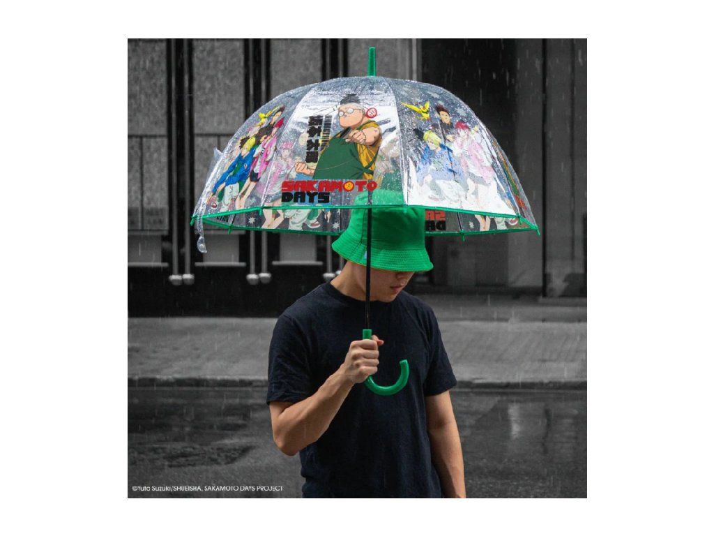 Zůstaňte stylově v suchu s průhledným deštníkem Sakamoto Days, inspirovaným populární manga sérií Sakamoto Days. Díky elegantní průhledné stříšce a výrazným kresbám postav vnáší tento deštník do vašich každodenních nezbytností nádech anime stylu a zároveň vás chrání před živly. Díky odolné konstrukci a lehkému designu je praktický i poutavý. Ať už se pohybujete deštivými městskými ulicemi nebo se chlubíte svými fanoušky na conu, tento deštník je perfektním doplňkem pro fanoušky legendárního nájemného vraha, který se stal majitelem samoobsluhy.Doplňkové parametry