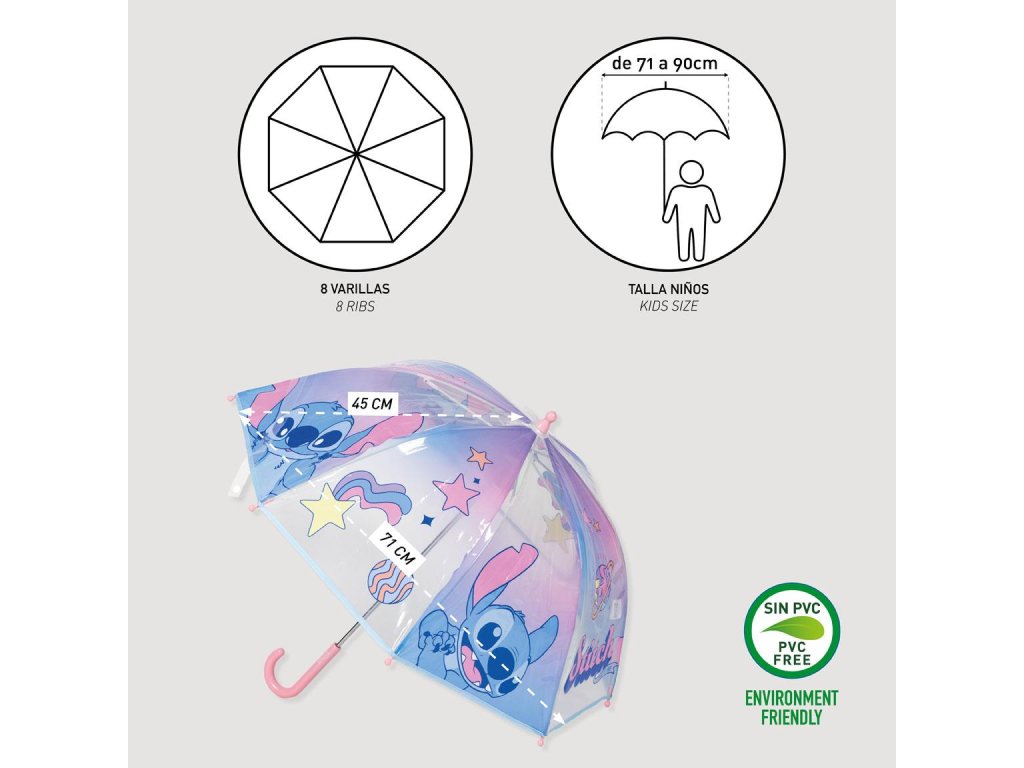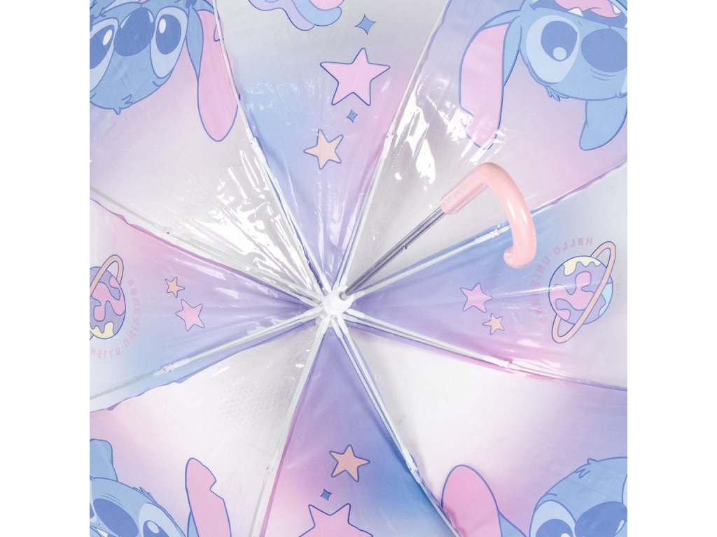 Deštník průsvitný modrorůžový, Stitch