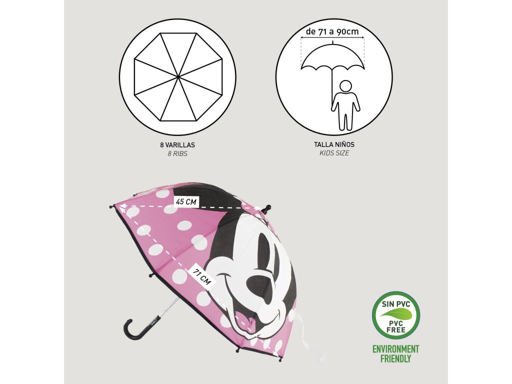 Růžový deštník s motivem Minnie nabízí praktickou ochranu před deštěm a oblíbený design pro fanoušky Mickey Mouse.Doplňkové parametry