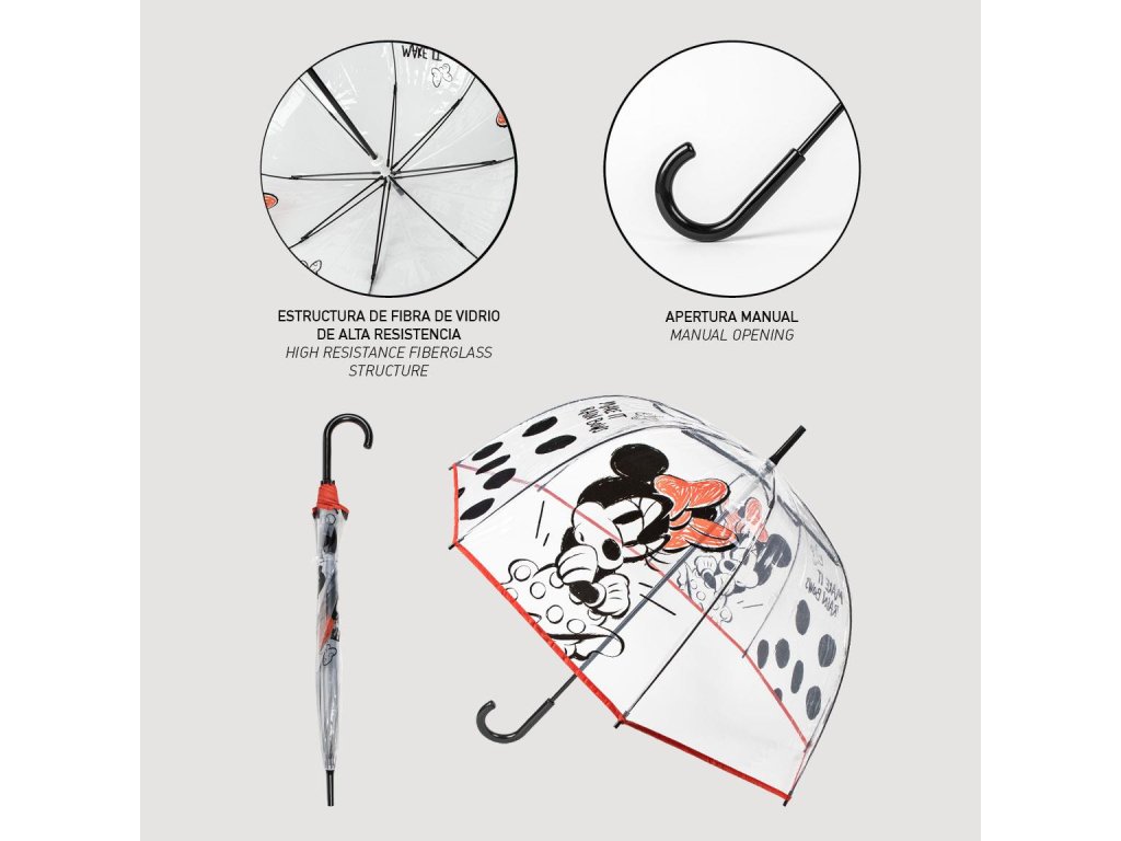 Průsvitný deštník s motivem Minnie nabízí ochranu před deštěm a oblíbený design pro fanoušky Mickey Mouse. Veselý a barevný motiv dodává deštivým dnům hravý a zábavný nádech.Doplňkové parametry