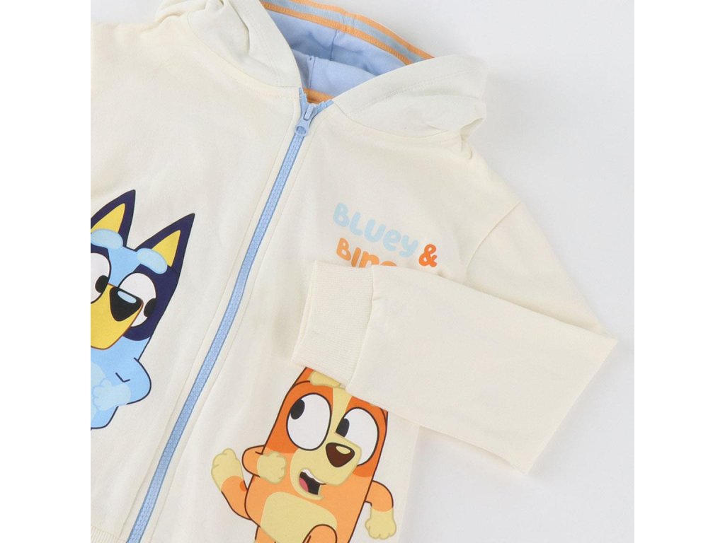 Pohodlná mikina s motivem Bluey je ideální pro chladnější dny. Je vybavena zapínáním na zip a kapucí, zatímco měkký materiál poskytuje maximální komfort.