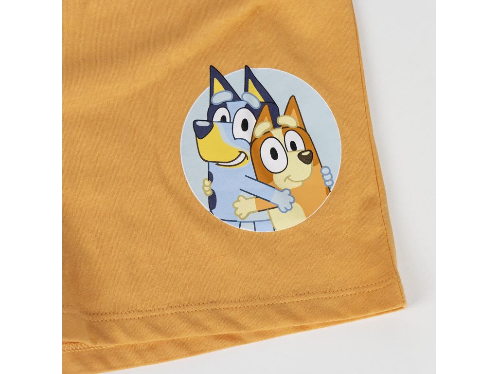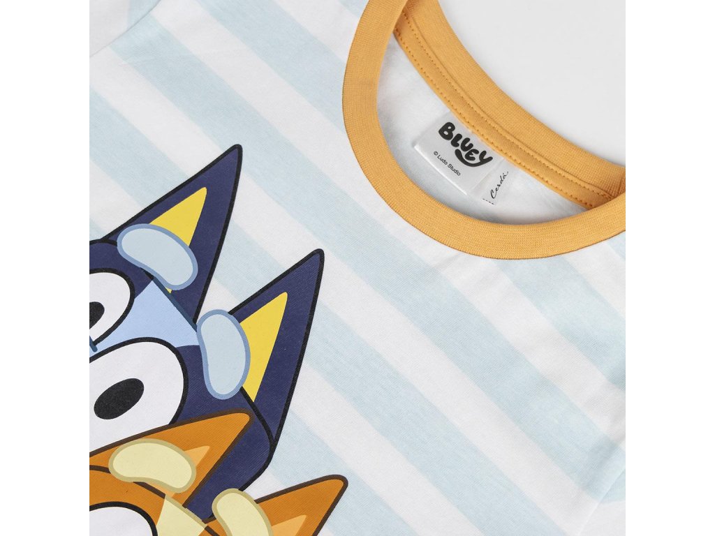 Lehké a pohodlné pyžamo s krátkými nohavicemi a motivem Bluey, vyrobené z 100 % bavlny v provedení single jersey. Ideální pro teplé noci nebo odpočinek ve volném čase.