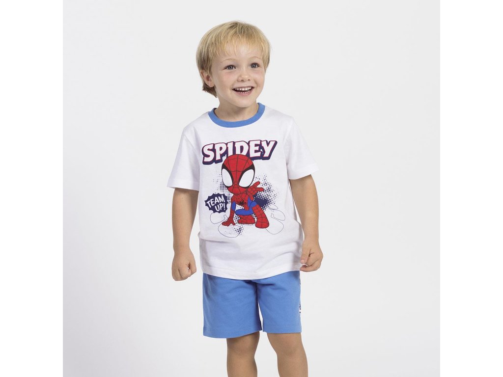 Sada s bílým tričkem a modrými kraťasy s motivem Spideyho nabízí pohodlné a stylové oblečení pro volný čas i každodenní nošení. Vyrobená z měkkého a prodyšného materiálu, zajišťuje komfort po celý den.Doplňkové parametry
