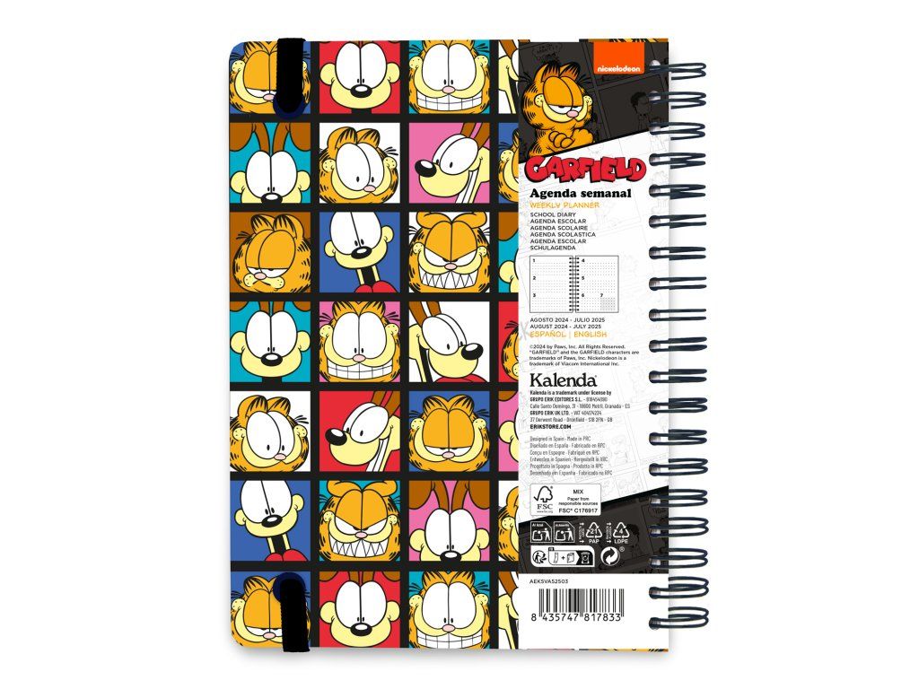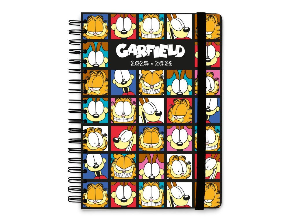Diář pro školní rok 2025/2025 od srpna do června s motivy Garfield. Součástí balení jsou 2 vyřezávané záložky a 1 stránka samolepek.Doplňkové parametry